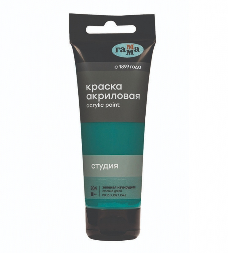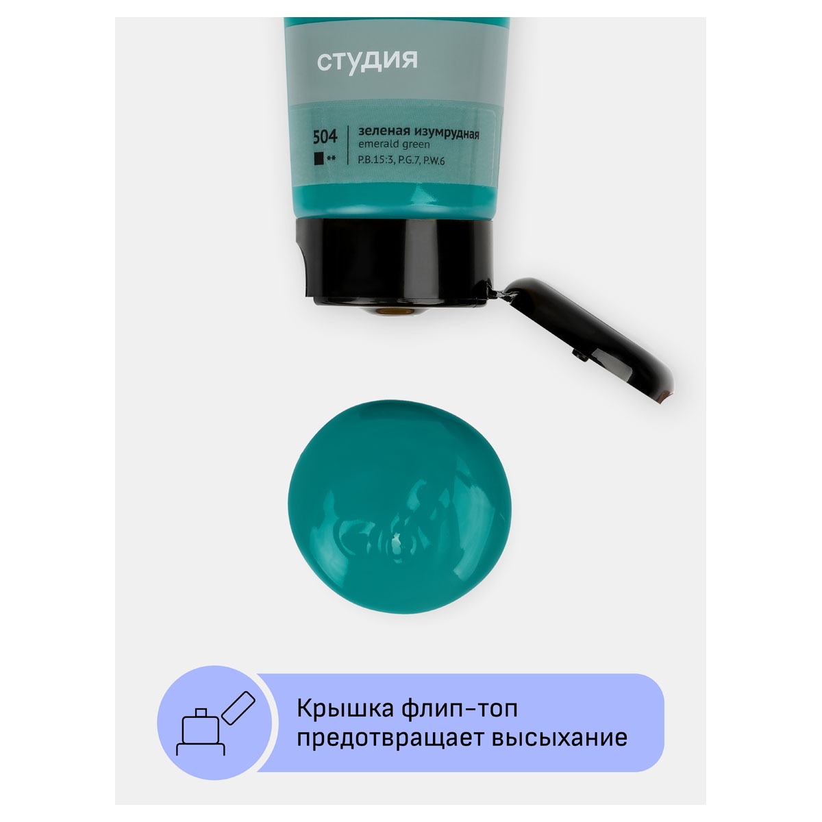 Краска акриловая художественная "Студия", 75мл, зеленая изумрудная