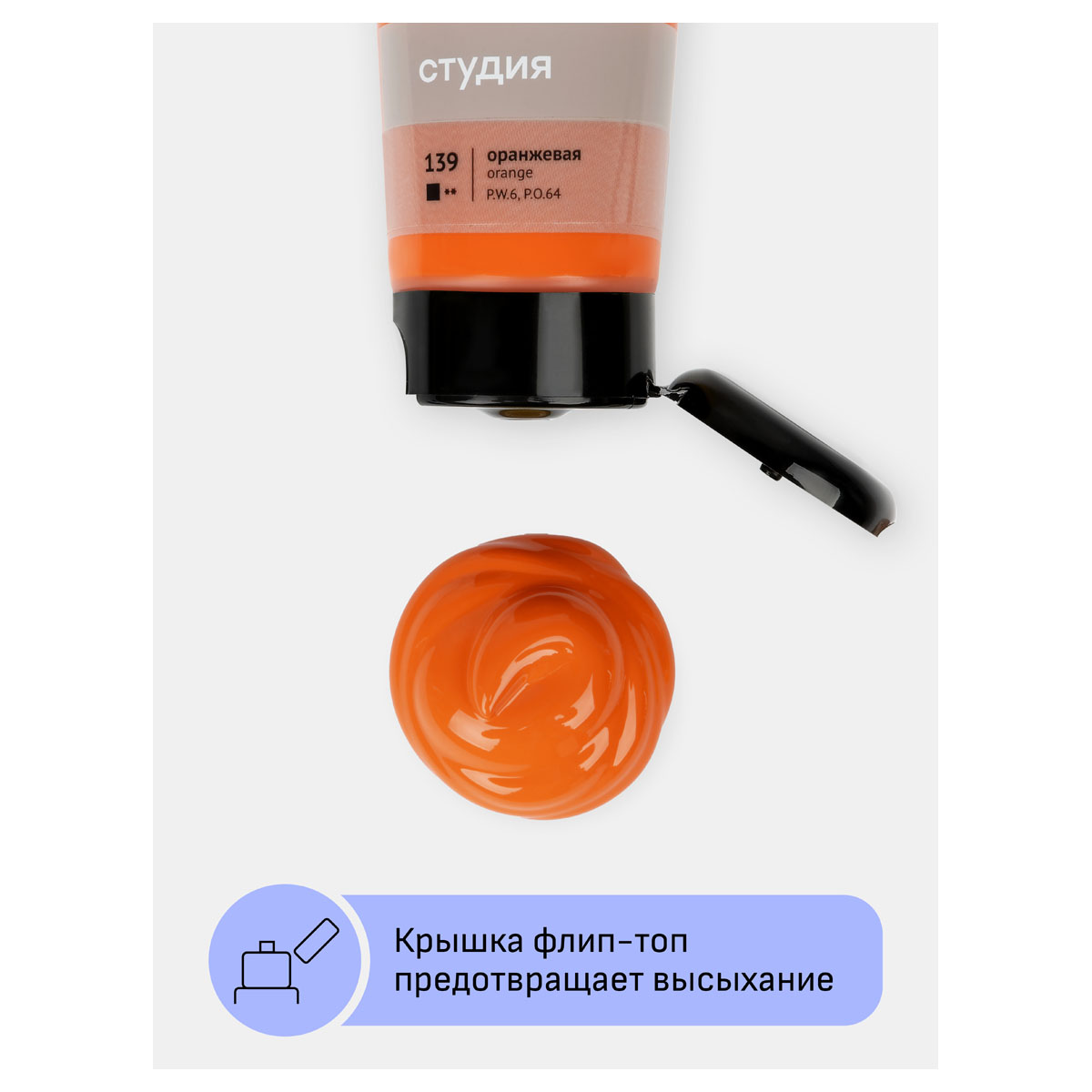 Краска акриловая художественная "Студия", 75мл, оранжевая
