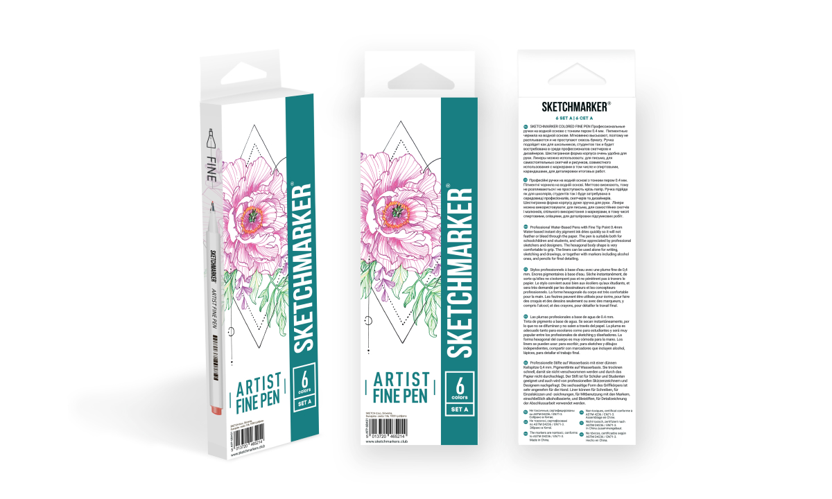 SKETCHMARKER ARTIST FINE PEN – высококачественные профессиональные ручки на водной основе с тонким наконечником 0,4 мм.