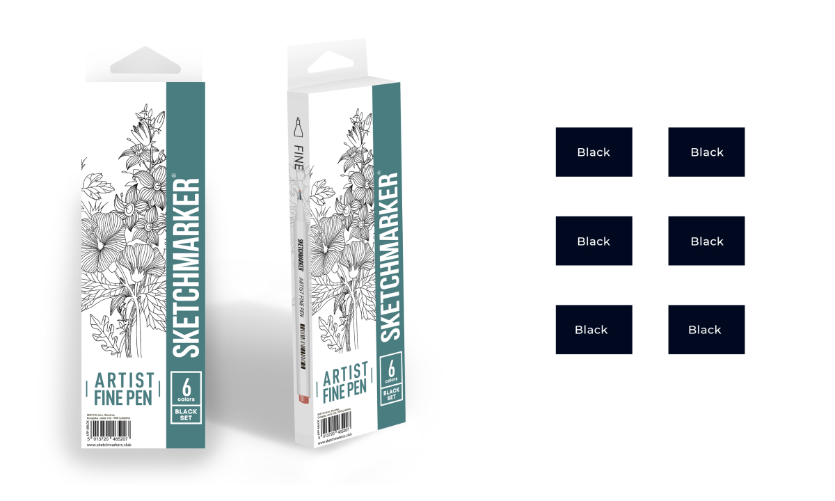SKETCHMARKER ARTIST FINE PEN – высококачественные профессиональные ручки на водной основе с тонким наконечником 0,4 мм.