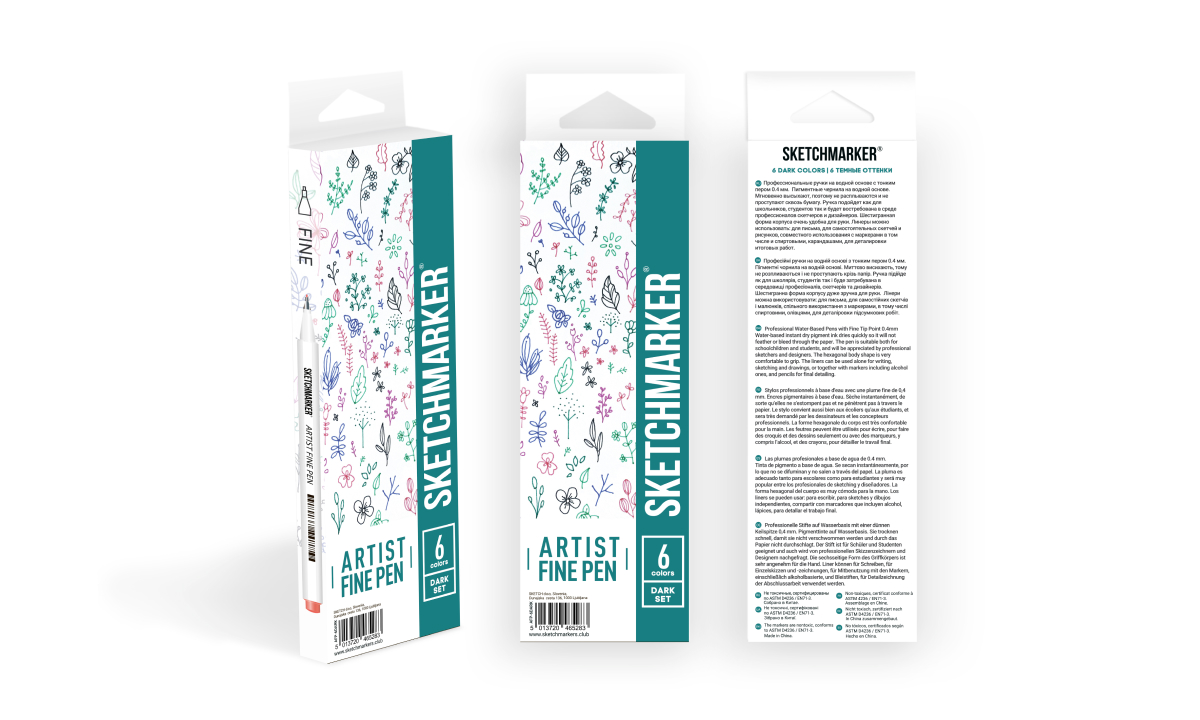 SKETCHMARKER ARTIST FINE PEN – высококачественные профессиональные ручки на водной основе с тонким наконечником 0,4 мм.