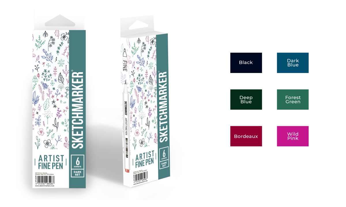 Набор капиллярных ручек Sketchmarker Artist fine pen Dark colors 6цв