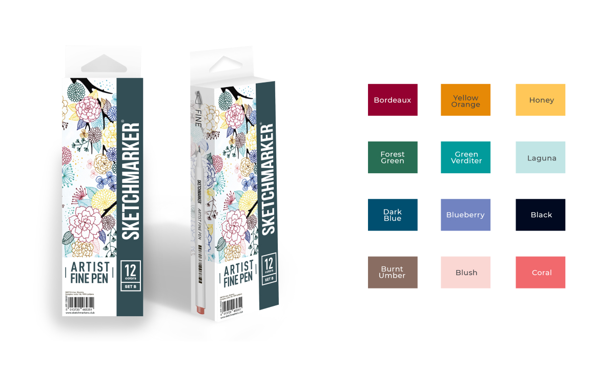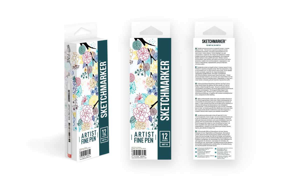 SKETCHMARKER ARTIST FINE PEN – высококачественные профессиональные ручки на водной основе с тонким наконечником 0,4 мм.