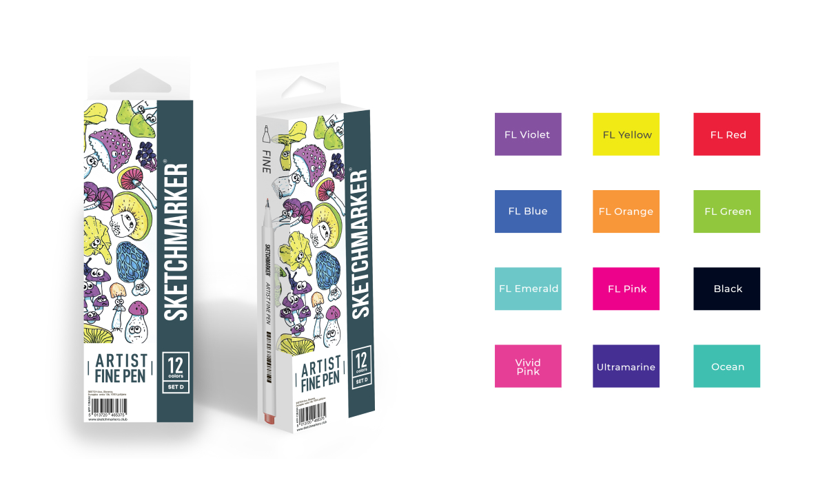 SKETCHMARKER ARTIST FINE PEN – высококачественные профессиональные ручки на водной основе с тонким наконечником 0,4 мм.