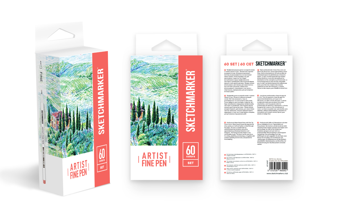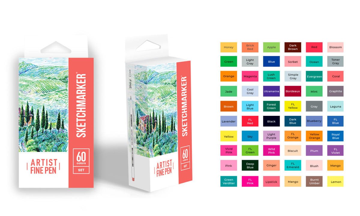SKETCHMARKER ARTIST FINE PEN – высококачественные профессиональные ручки на водной основе с тонким наконечником 0,4 мм.