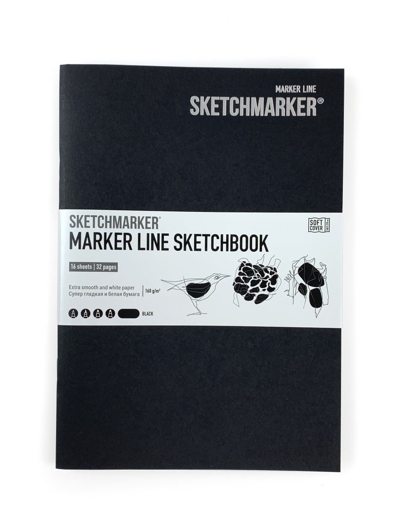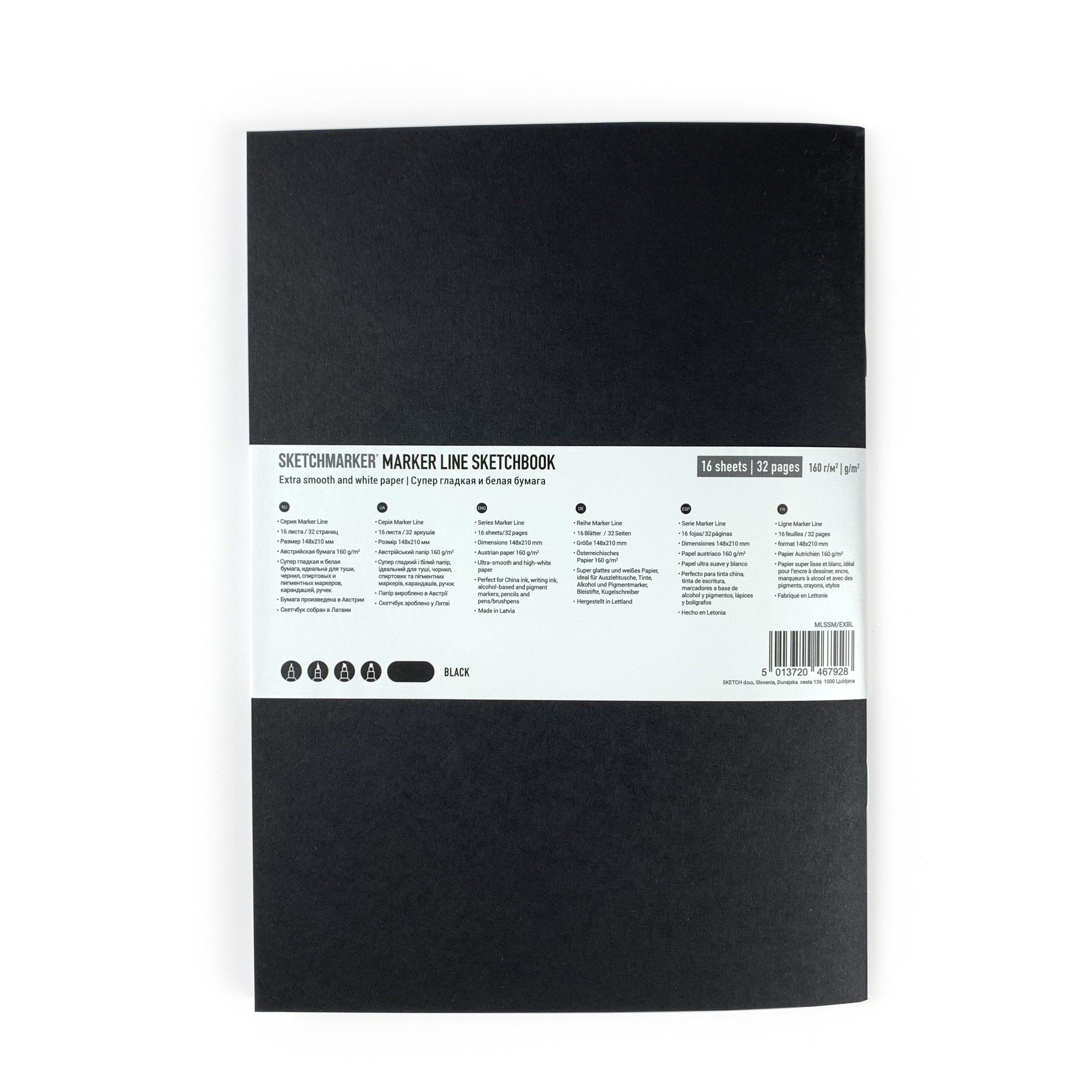 Скетчбук Sketchmarker MARKER LINE 160г/м.кв 148х210мм 16л мягкая обложка цв.черный