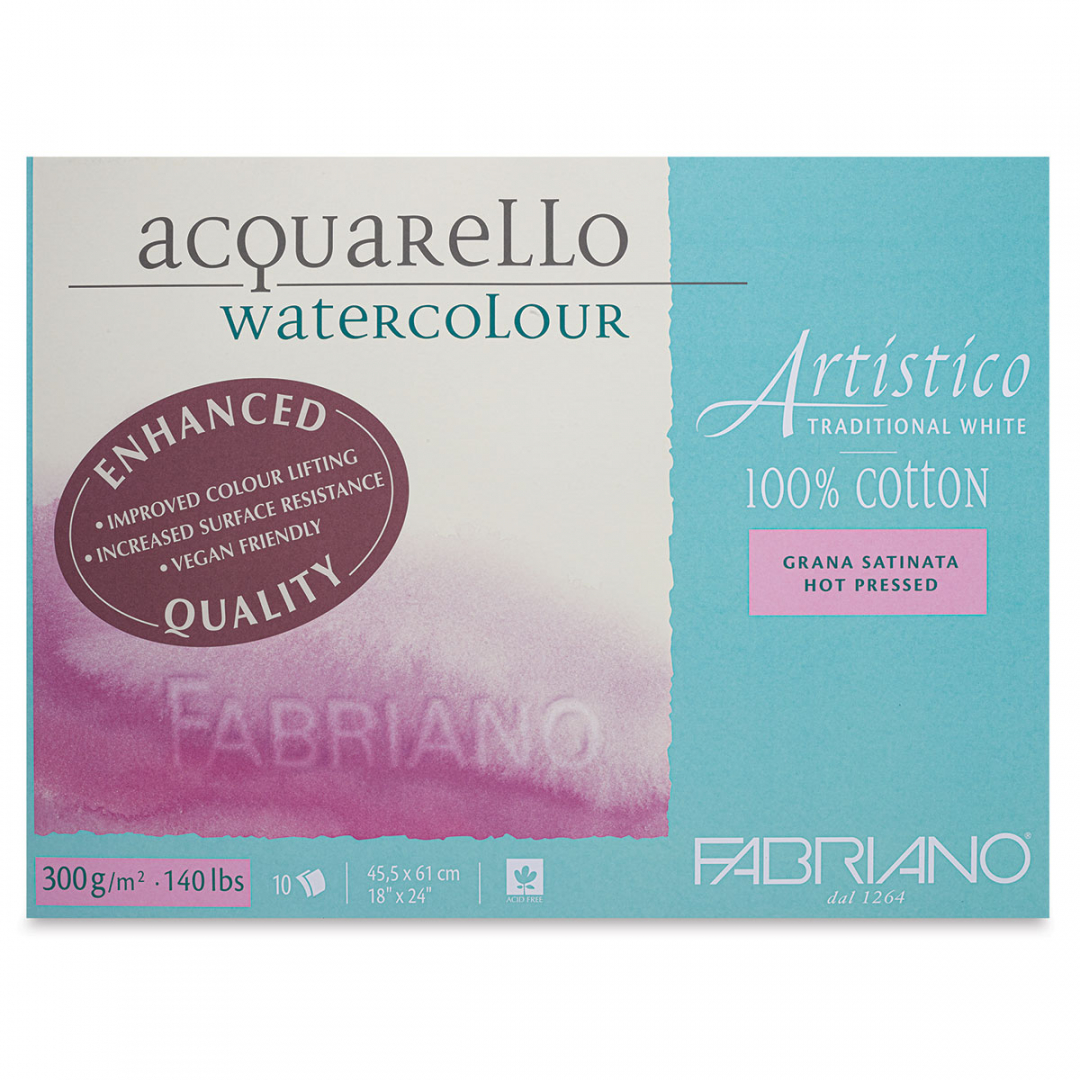 Обновленная профессиональная акварельная бумага Artistico White от Fabriano (Италия) из 100% хлопка предназначена для акварели.