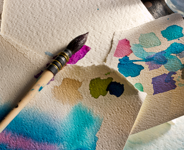 Однако, следует помнить, что фактура такой бумаги значительно препятствует растеканию краски и, как правило, для достижения контрастности цветового слоя, потребуется набрать на кисть чуть больше краски, чем обычно, т.к. много пигмента возьмут на себя углубления в поверхности бумаги.
