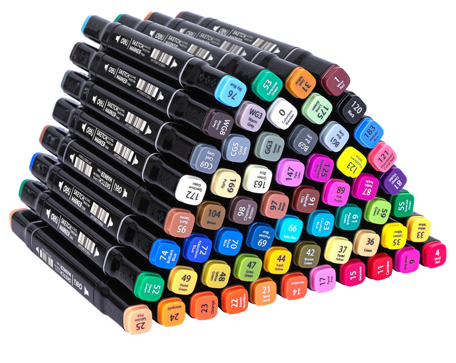 Набор маркеров для скетчинга Deli E70806-60 двойной пиш. наконечник 60цв. текстильная сумка (60шт.)