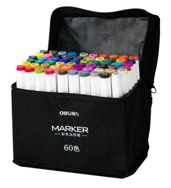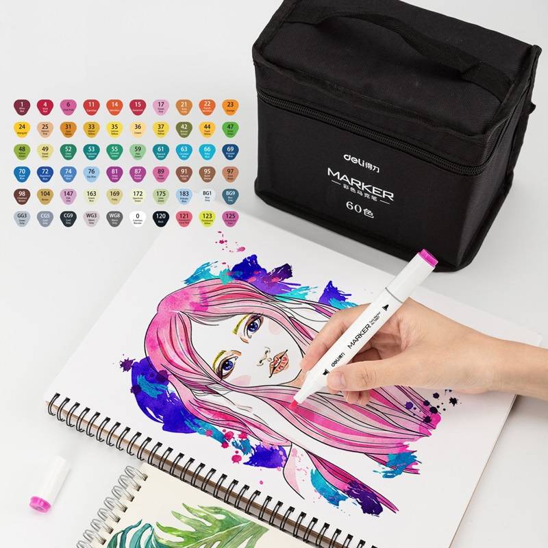 Набор маркеров для скетчинга Deli 70807-60 двухсторонний 60цв. ассорти текстильная сумка