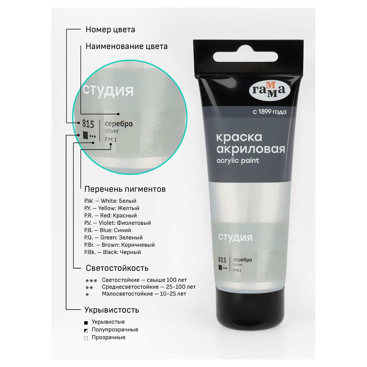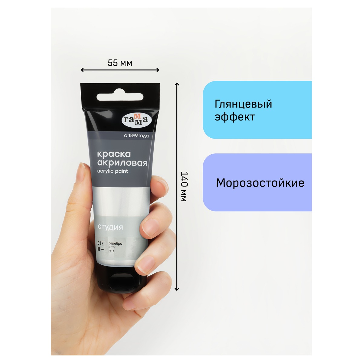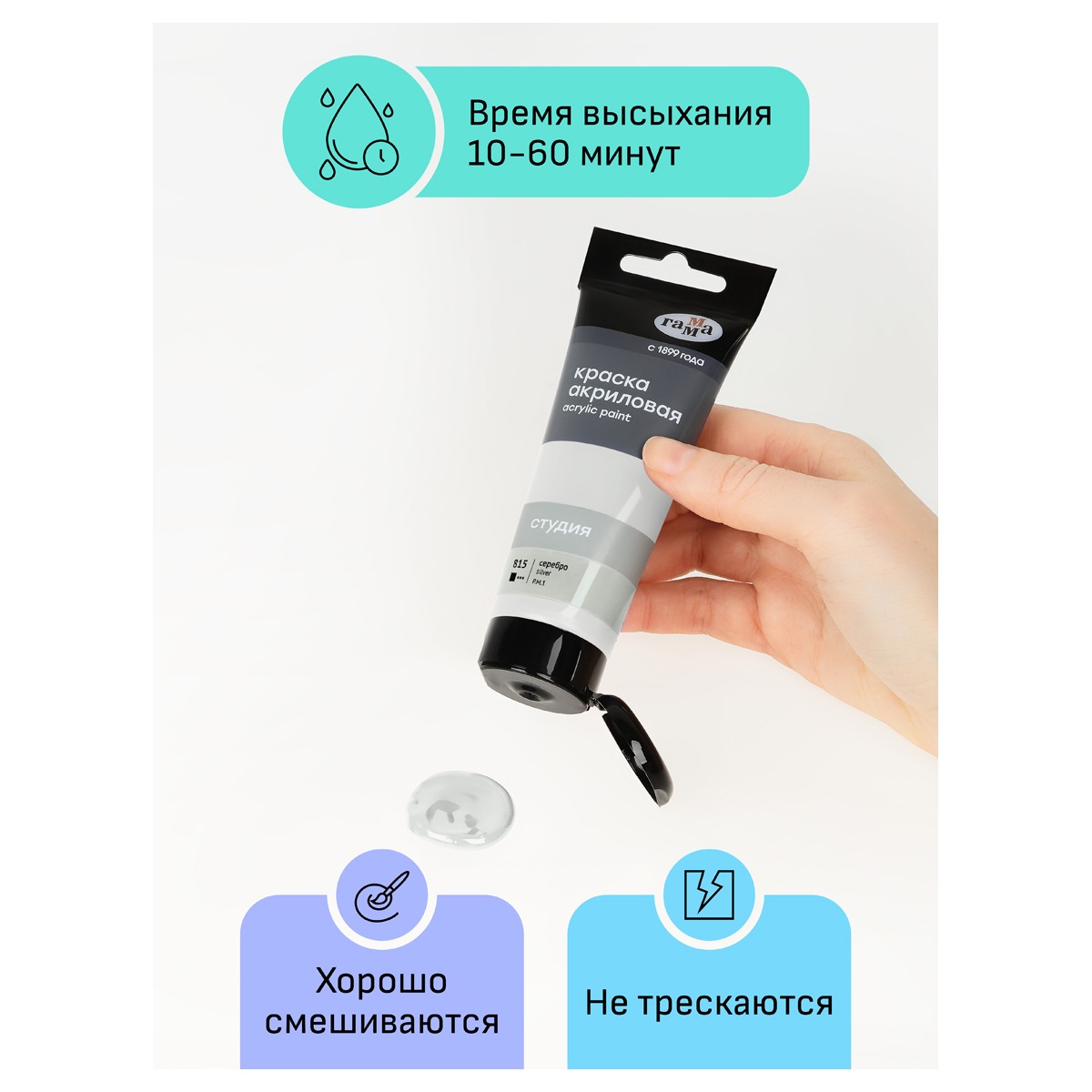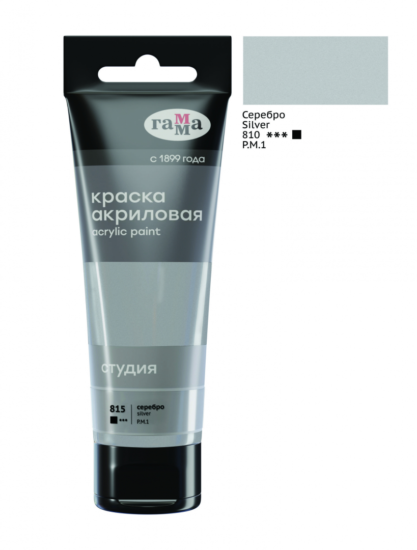 Краска акриловая художественная Гамма "Студия", 75мл, пластиковая туба, серебро