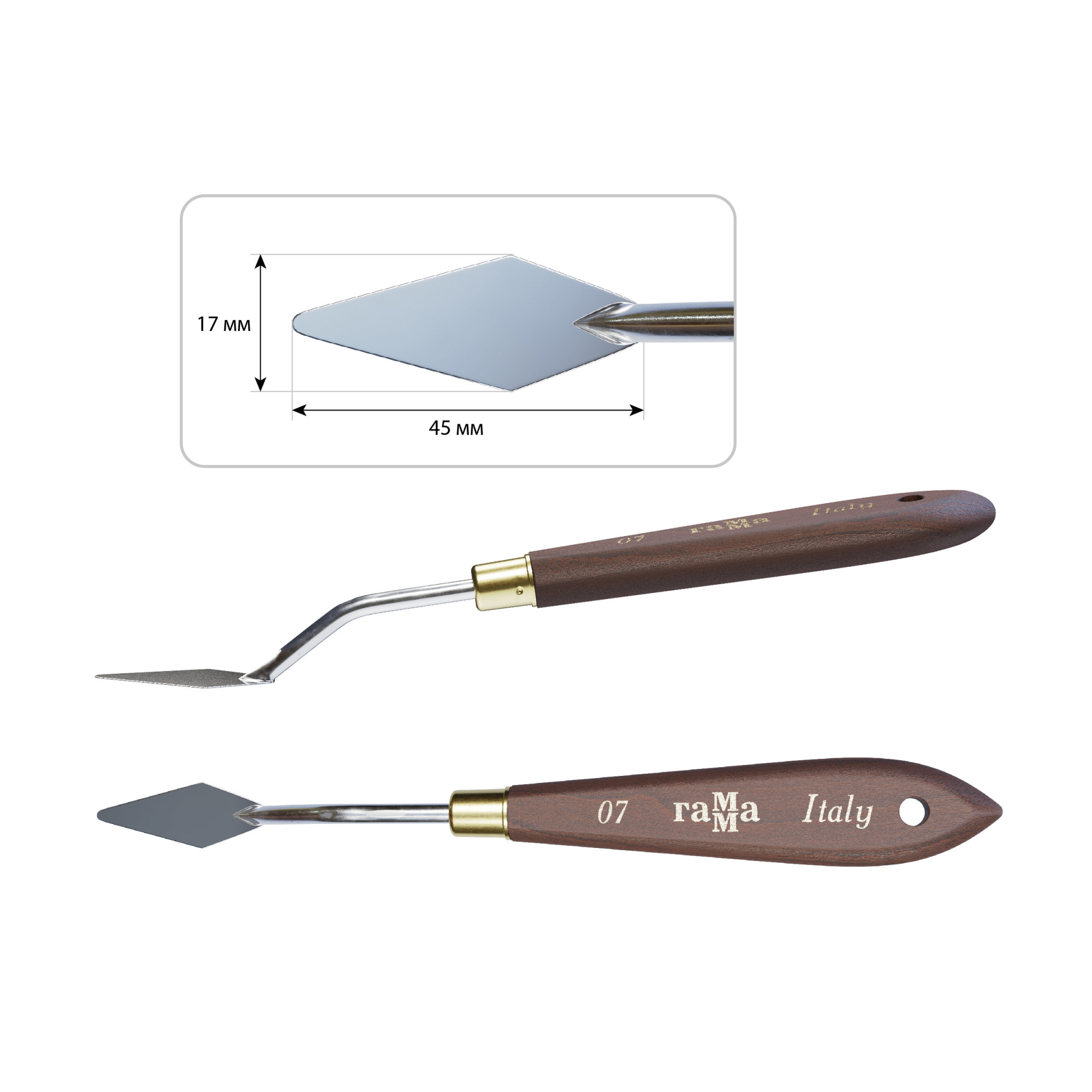 Коллекция мастихинов представлена в 12 самых популярных видах лезвий: ромб, капля, «рыбка», овальное, прямоугольные.