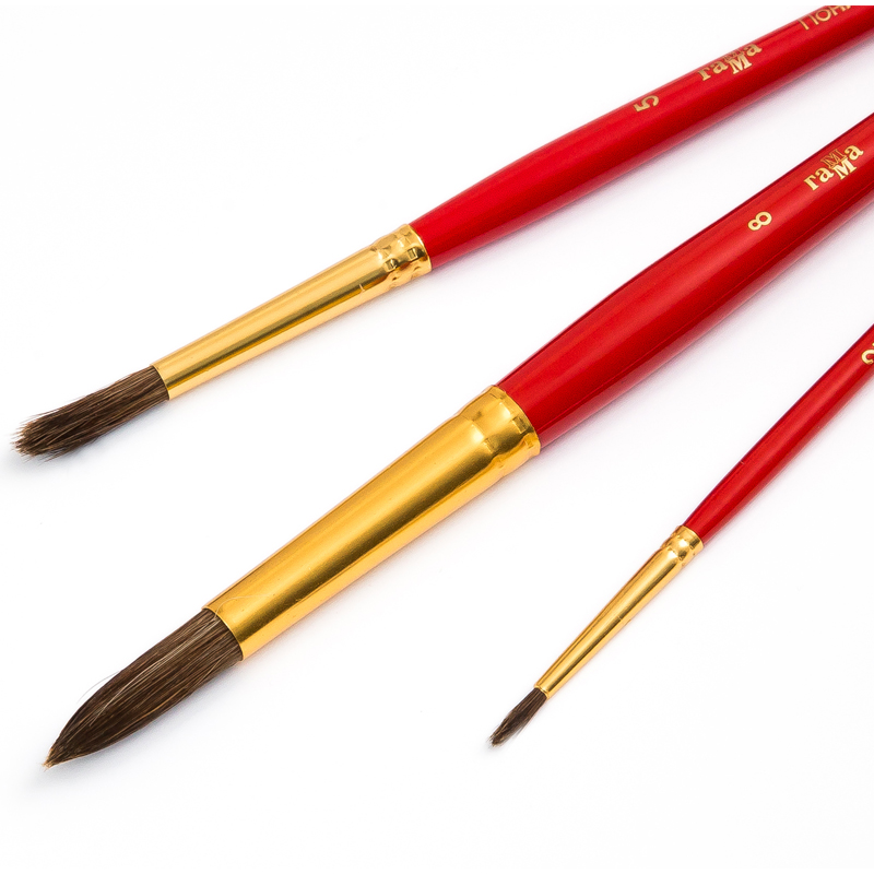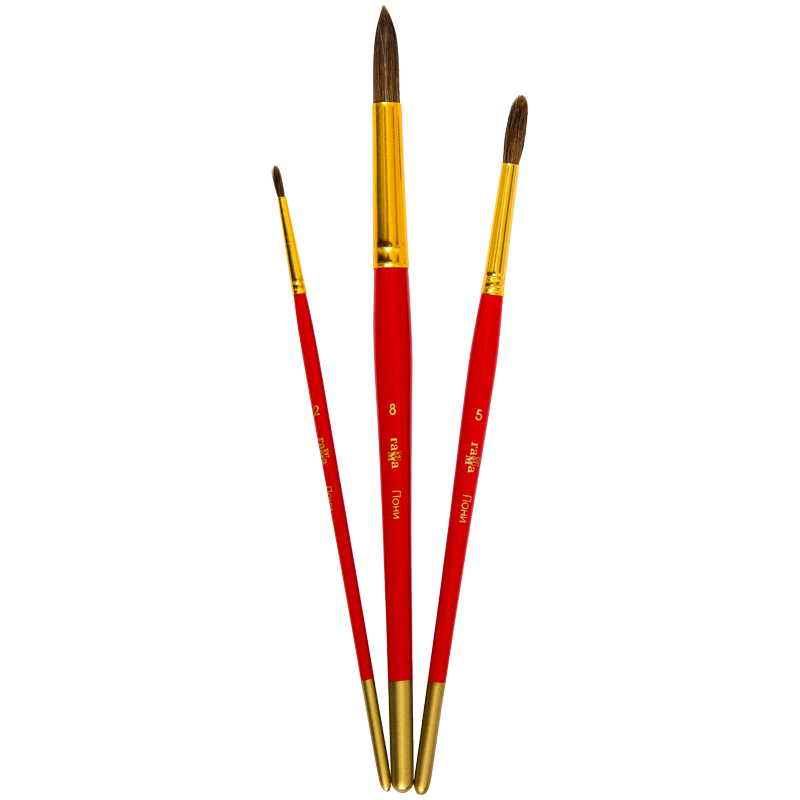 Набор состоит из трёх круглых кистей из гривы пони № 2, 5, 8 в блистере.