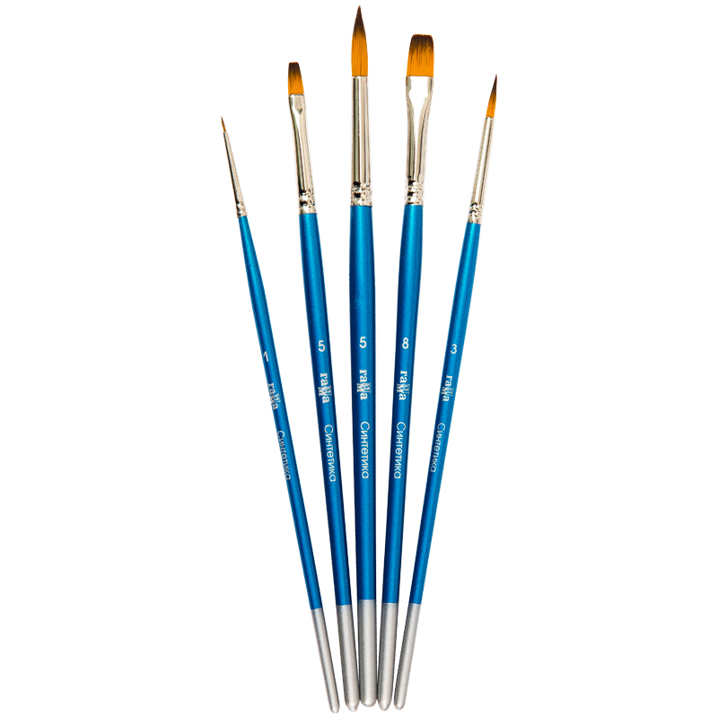 Набор кистей из синтетики в блистере: круглые №1, 3, 5, плоские № 5, 8.