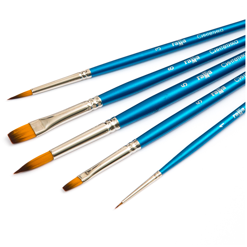 Набор кистей Гамма "Классические", 5шт., синтетика, круглые №1,3,5, плоские №5,8, блистер, европодве
