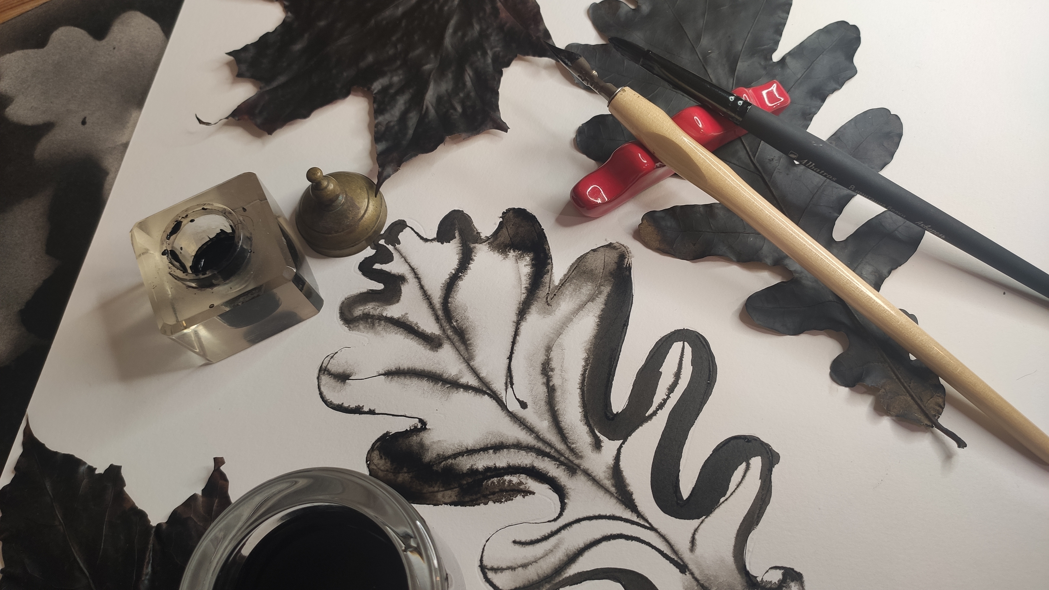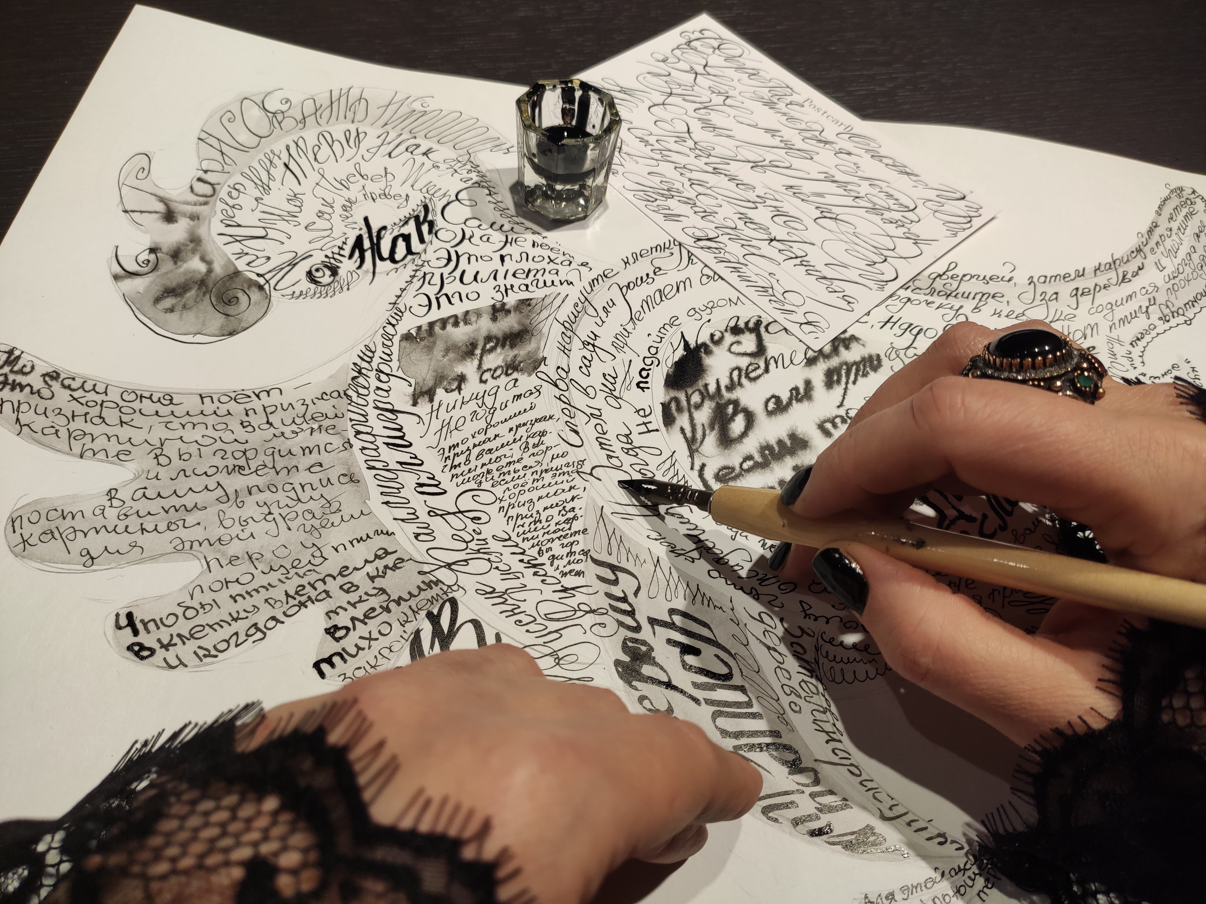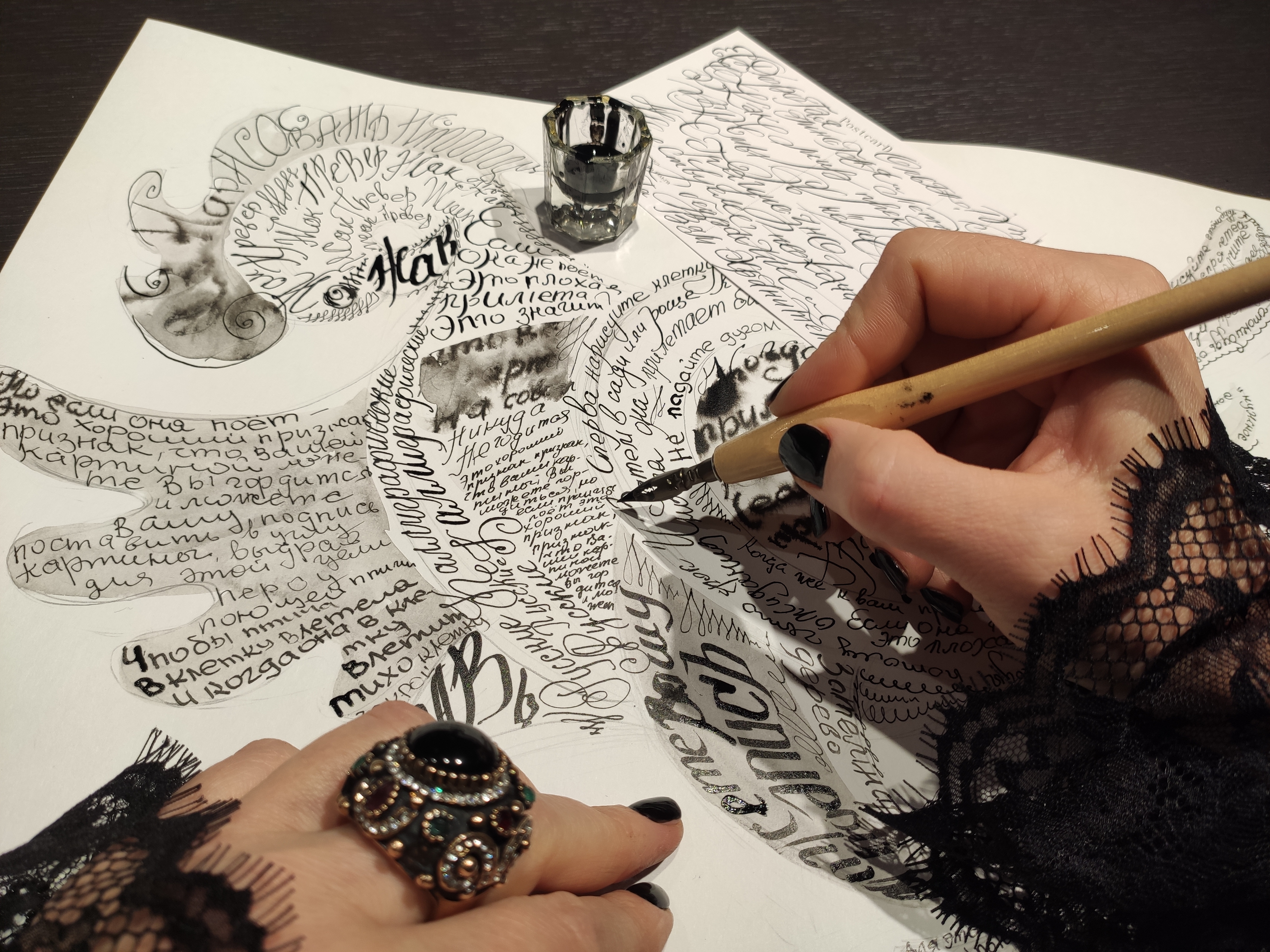 При этом, перо набирает в себя достаточный объем туши или чернил, что бы не было нужды слишком часто обращаться к чернильнице.