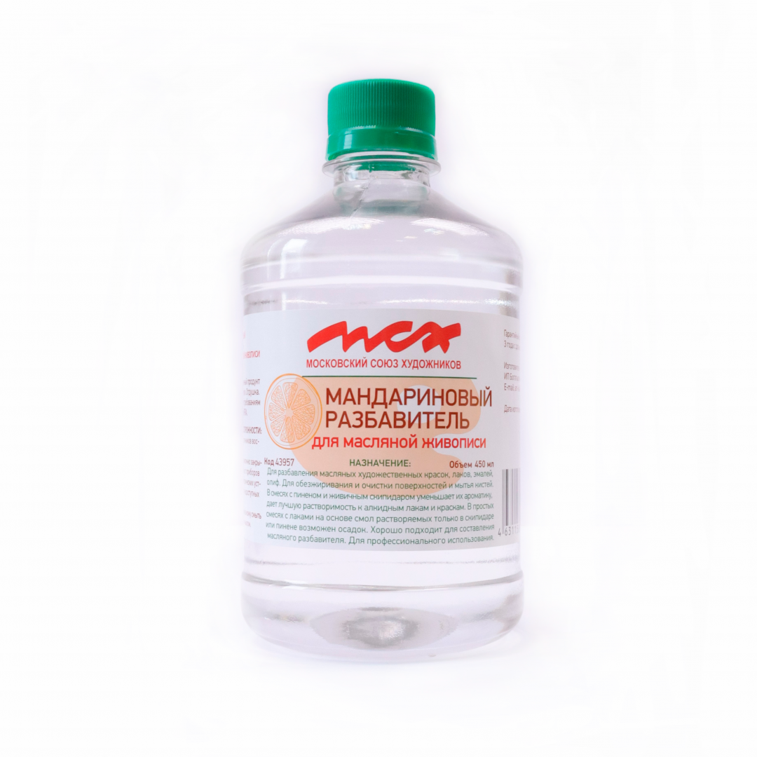 Мандариновый разбавитель для масляной живописи. Для разбавления масляных художественных красок, лаков, эмалей, олиф. Для обезжиривания и очистки поверхностей и мытья кистей. В смесях с пиненом и живичным скипидаром уменьшает их ароматику, даёт лучшую растворимость к алкидным лакам и краскам. В простых смесях с лаками на основе смол растворяемых только в скипидаре или пинене возможен осадок. Хорошо подходит для составления масляного разбавителя. Для профессионального использования.