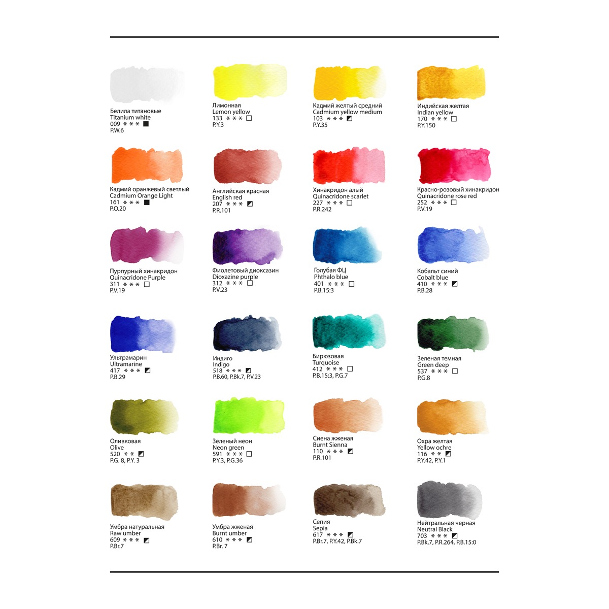 - Сиена жжёная, P.R.101 *** полупрозрачный;