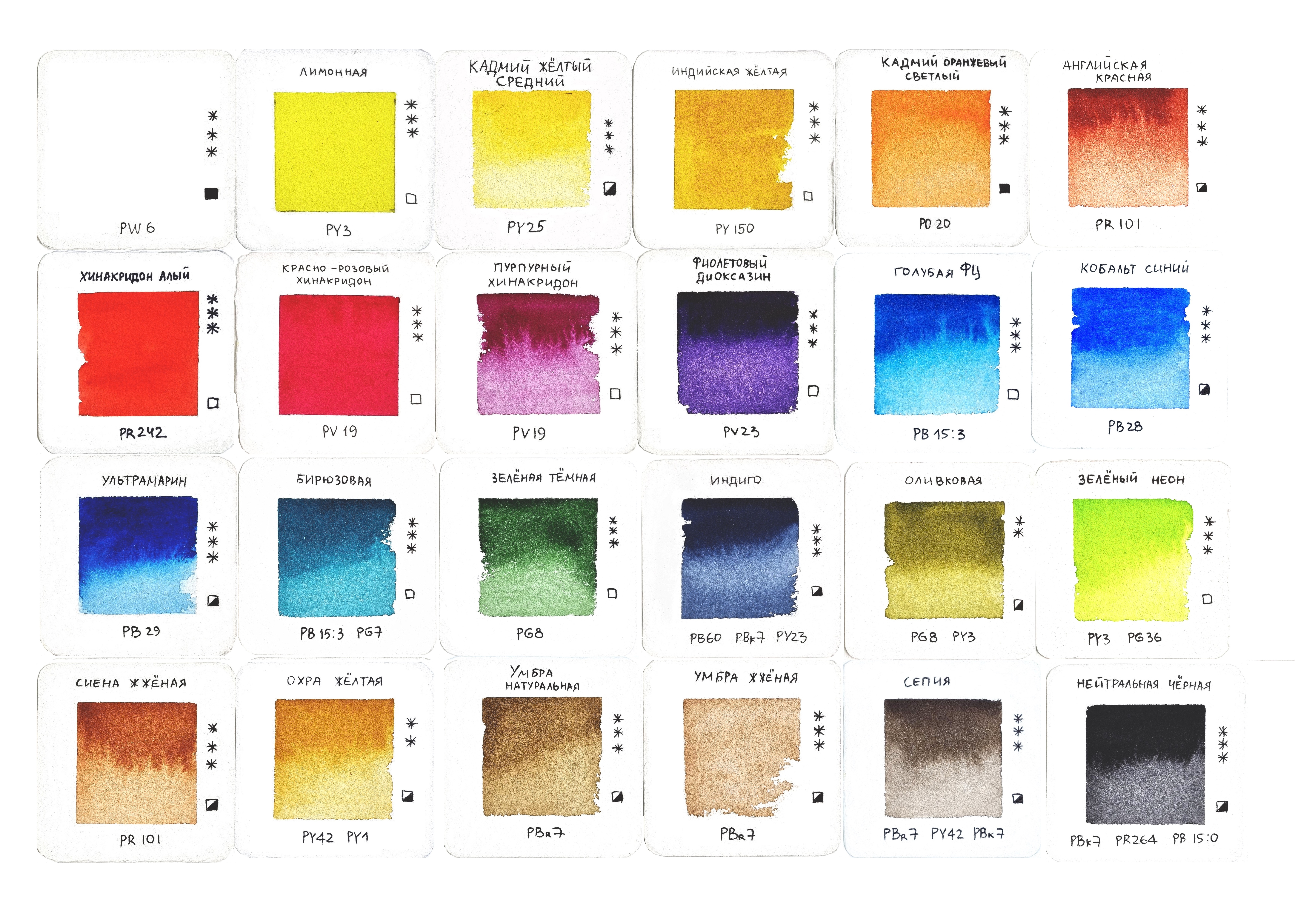 На кюветах нет обозначений с номером цвета. Сами кюветы такого же формата как у акварели серии «Студия», т. е более тонкие, чем у БН или Pinax (см. изо в разделе).