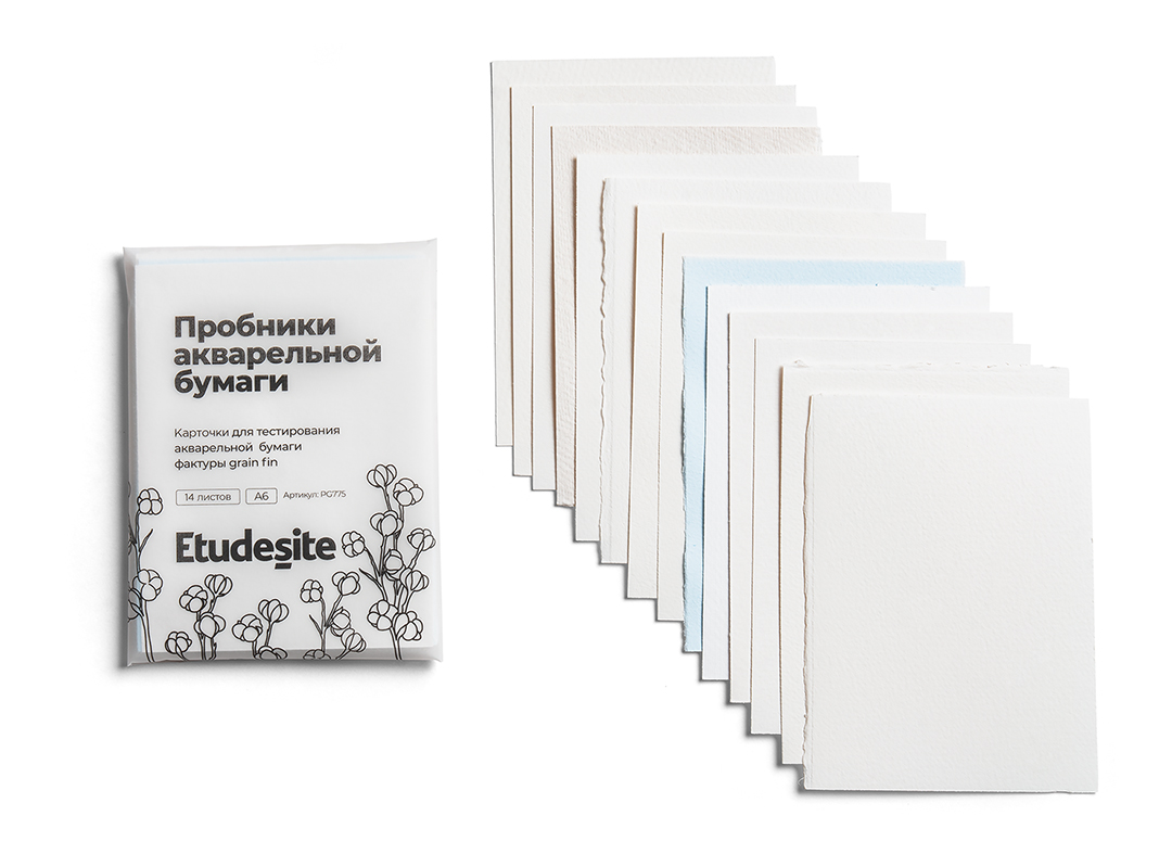 Набор из 14 видов акварельной бумаги фактуры Фин 11,2x15,2 см