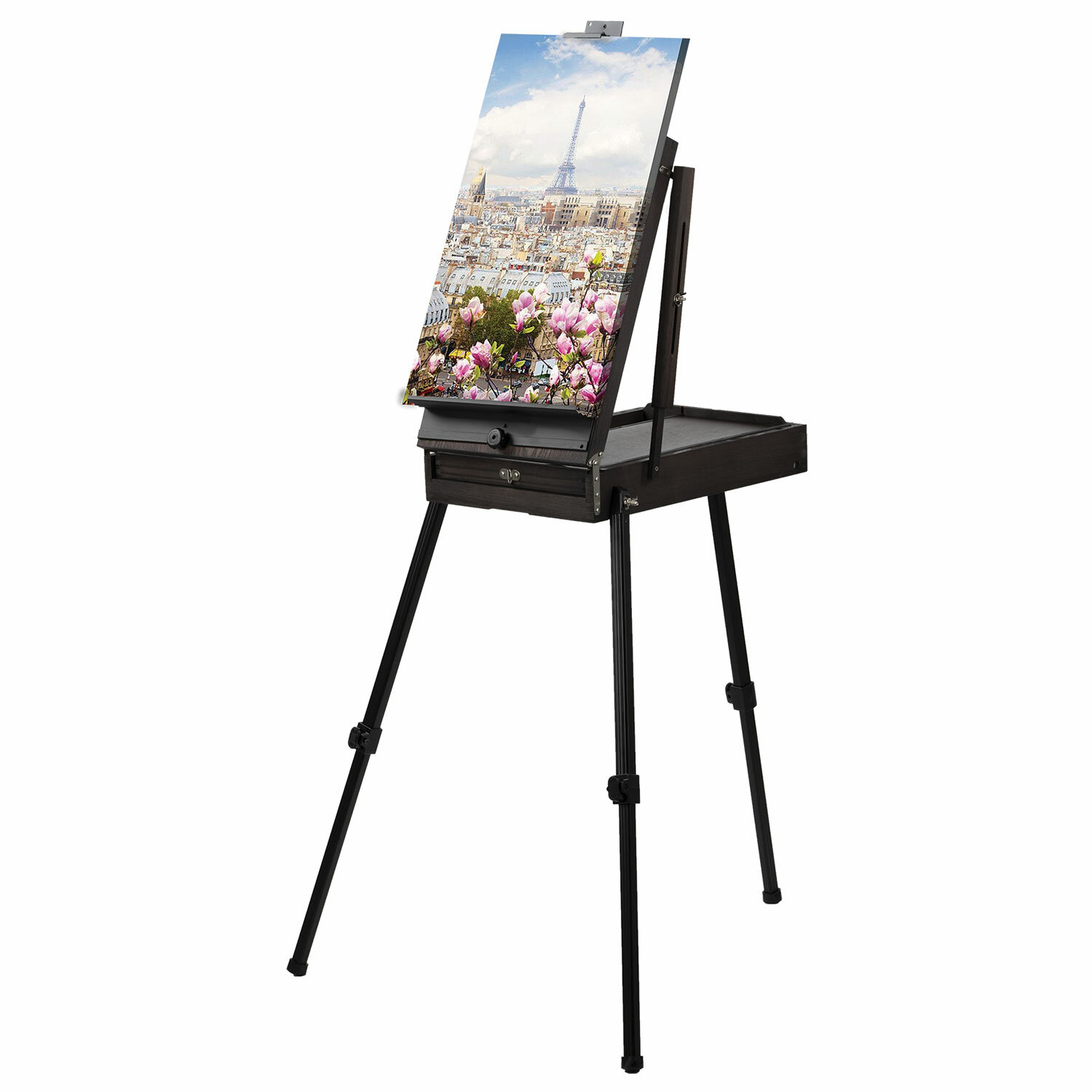 Изготовлен из сосны с применением качественной фурнитуры. Оснащен ящиком для хранения кистей и палитрой для красок. Этюдник позволяет комфортно работать как сидя, так и стоя благодаря съемным телескопическим ножкам длиной 90 см и регулирующему наклону холста с его максимальной высотой до 82 см. Для удобства переноски имеется регулируемый тесемный ремень.