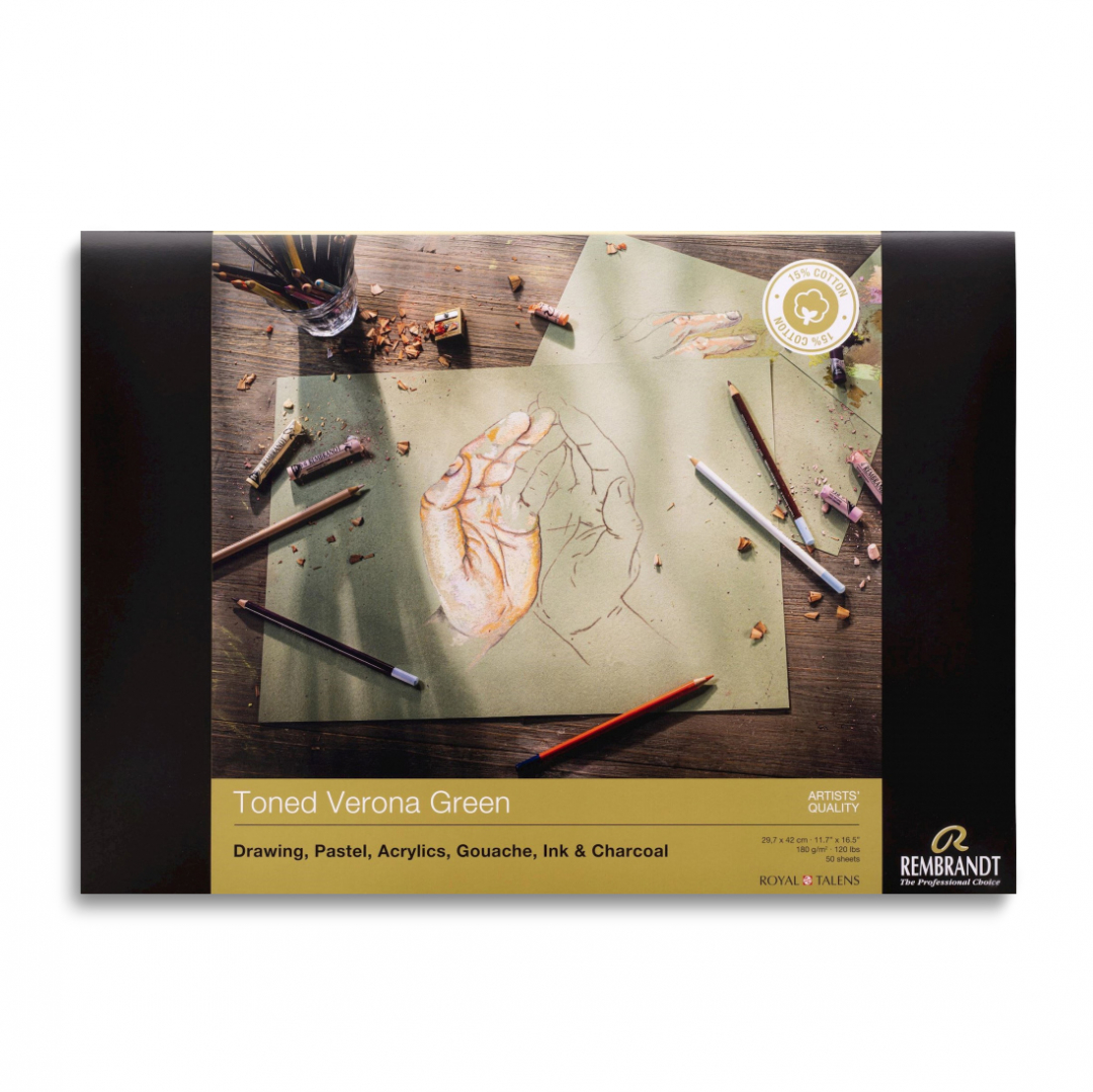 Склейка для пастели "Rembrandt", 180г/м2, A3, 50л, зеленые тона