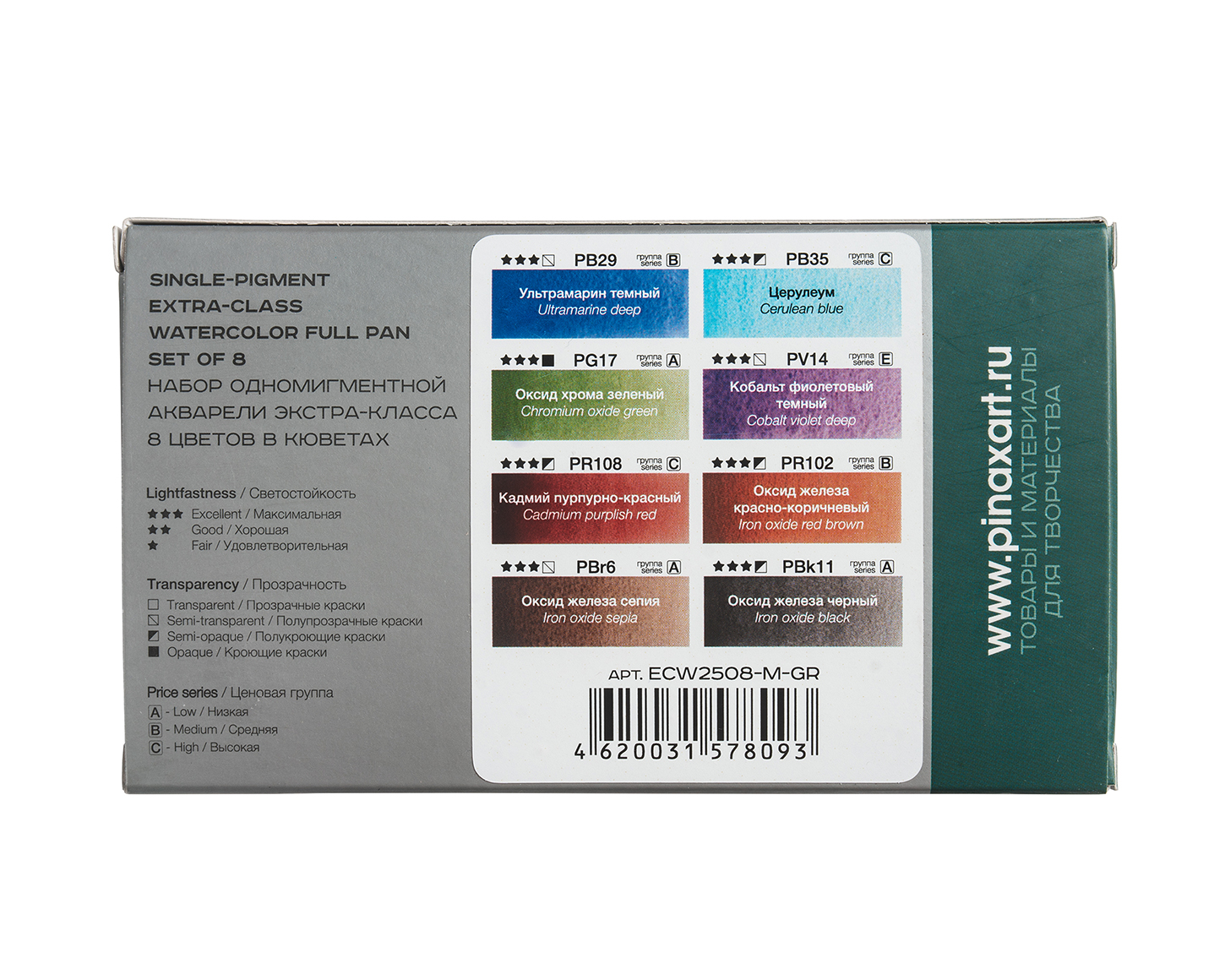 Непревзойденная чистота цвета! Для достижения максимальной прозрачности и чистоты цвета при производстве акварели серии Pinax EXTRA значимы следующие факторы: