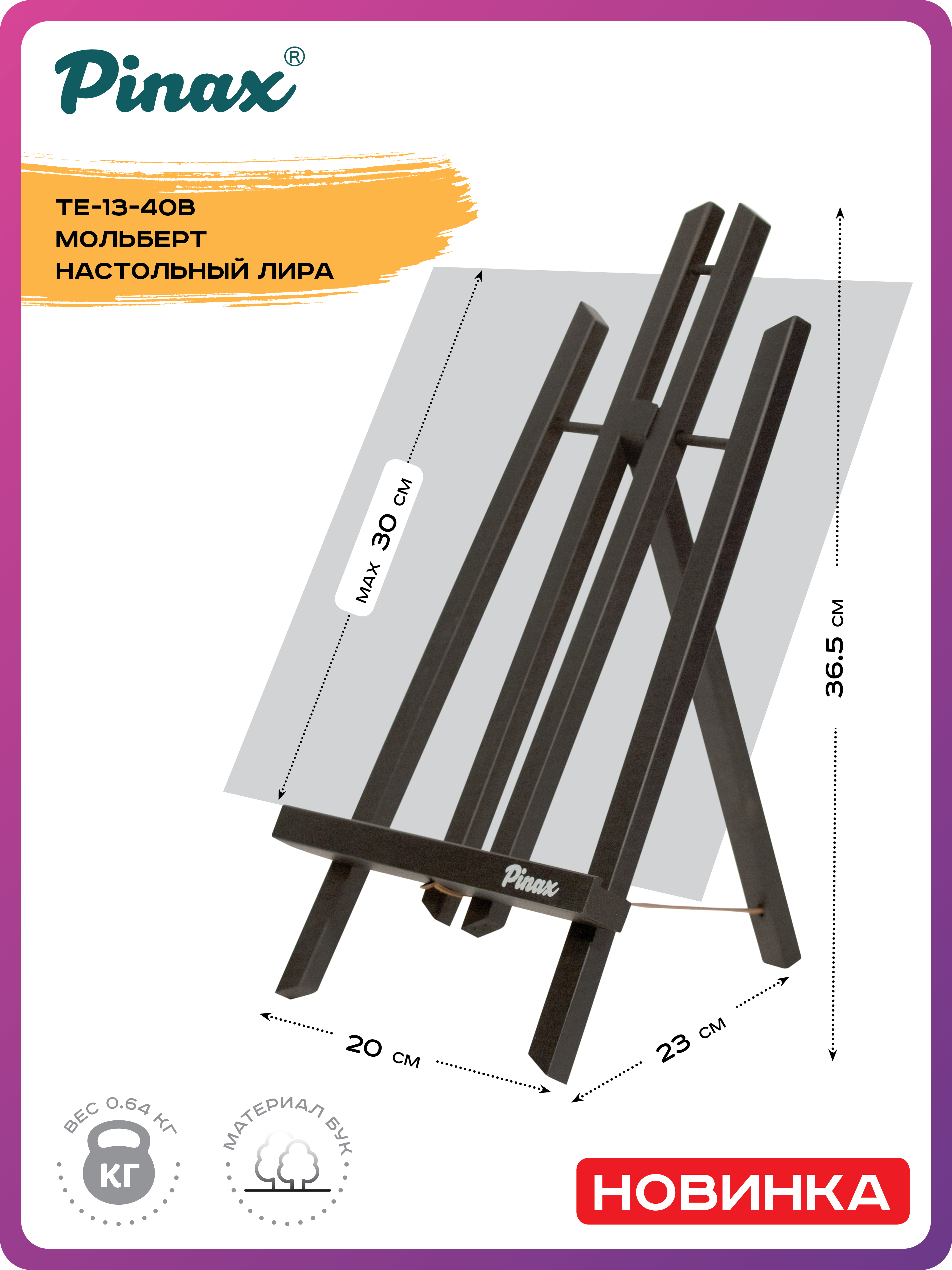 Настольный мольберт из бука модели TE-13-40 теперь доступен для заказа в 3 новых цветах - белый, черный и "красное дерево". Опорная ножка складывается для компактного хранения. Высота холста до 30см.