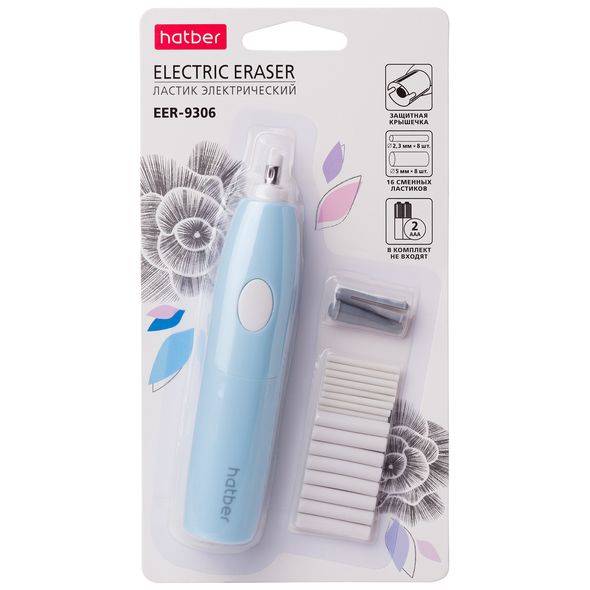 Электрический ластик Hatber со сменными насадками эргономичной формы. Позволяет аккуратно и без усилий корректировать карандашные наброски, эскизы и чертежи. Открывает новые возможности в скетчинге для создания бликов и рефлексов. В комплекте 16 сменных ластиков: 2,3мм - 8шт, 5мм - 8шт. Для предотвращения повреждения насадки при транспортировке ластик оснащён сдвижной защитной крышечкой. Работает от двух элементов питания AАА 1,5В (поставляется без элементов питания). Упаковка: блистер с европодвесом.