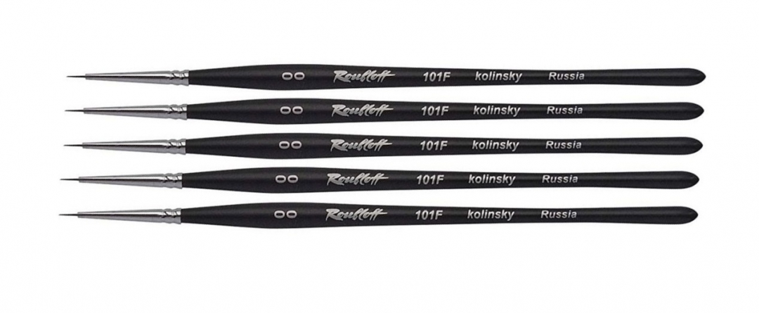 Кисть колонок круглая, короткая черная, матовая, фигурная ручка "101F" №00, для акварели, 5шт