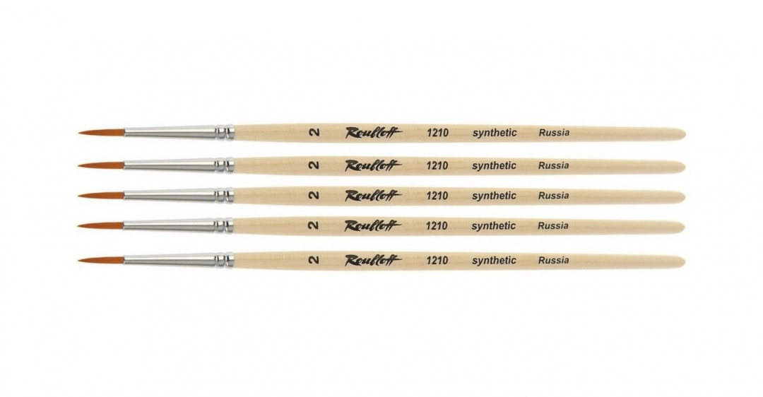 Кисть синтетика круглая короткая ручка "1210"№2 для масла, акрила, гуаши, темперы, 5шт
