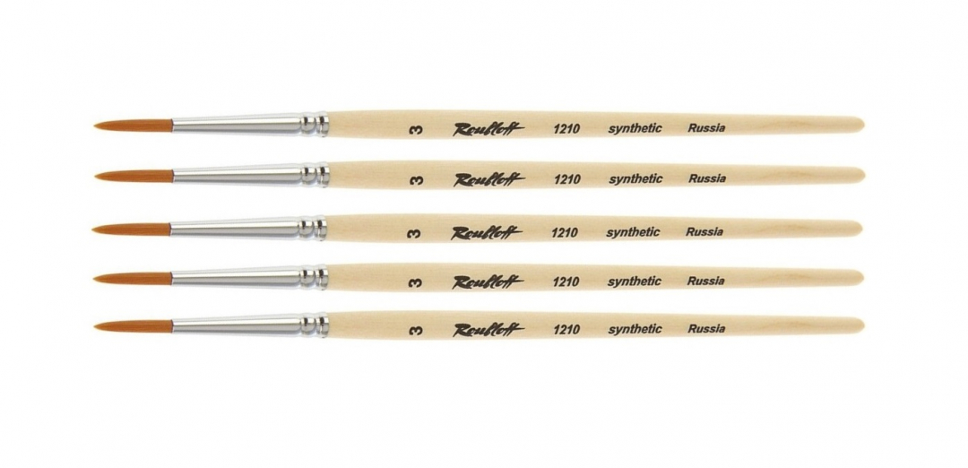 Кисть синтетика круглая короткая ручка "1210"№3 для масла, акрила, гуаши, темперы, 5шт