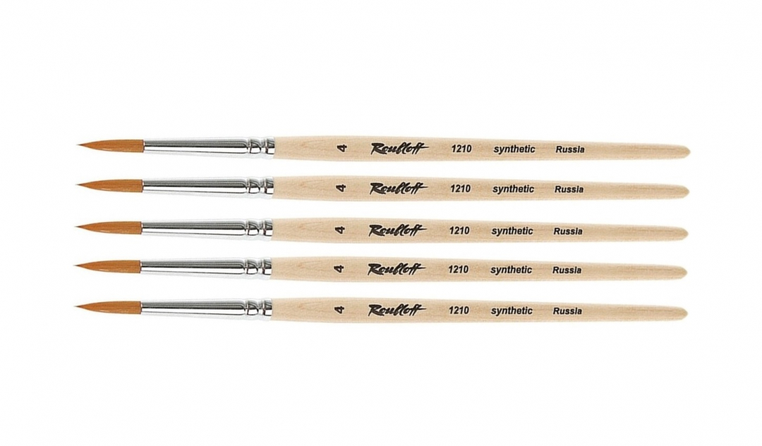 Кисть синтетика круглая короткая ручка "1210"№4 для масла, акрила, гуаши, темперы, 5шт