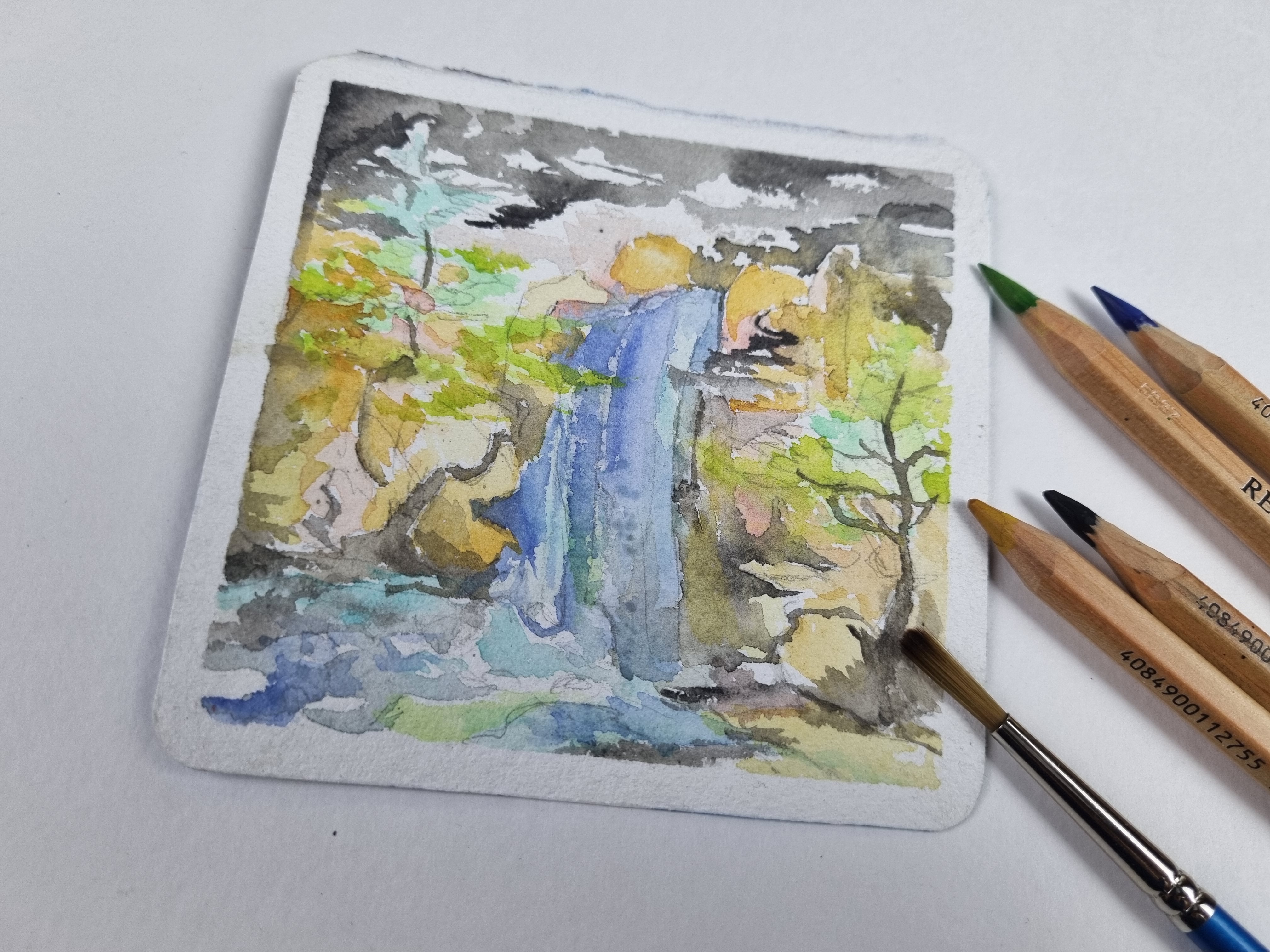 Для активации сухого пигмента можно использовать мягкую, смоченной в воде кисть или удобную кисть с резервуаром. В зависимости от степени размывания можно добиться разной прозрачности цвета.