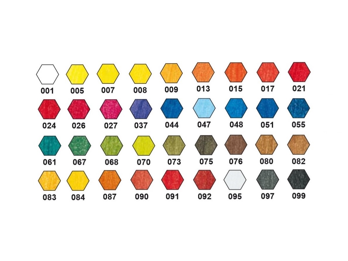 В наборе отлично подобранная цветовая палитра из 36 чистых, насыщенных цветов, которые хорошо смешиваются между собой и размываются водой до получения самых нежных акварельных оттенков, обладают устойчивостью к выцветанию. Грифели содержат в составе натуральный воск.