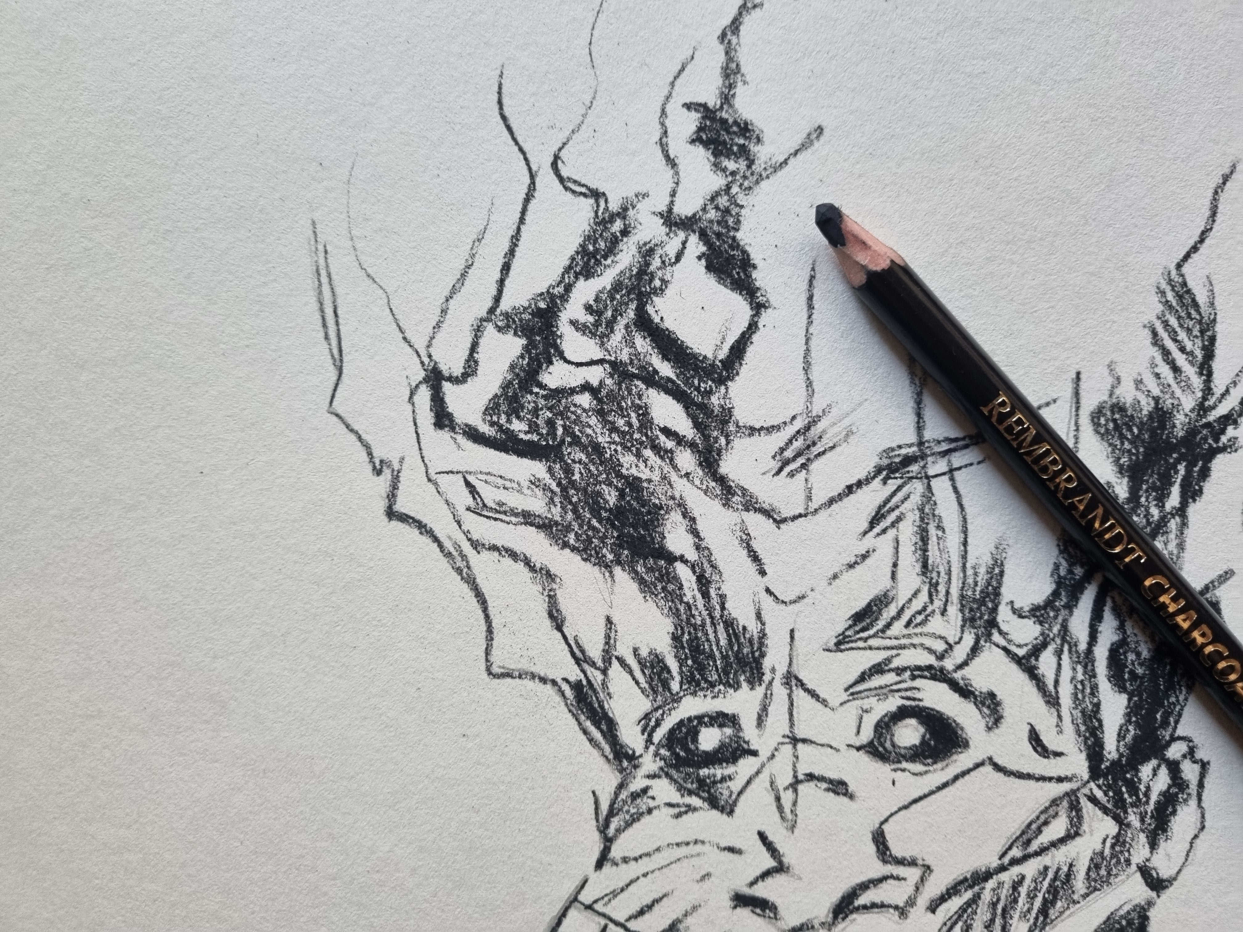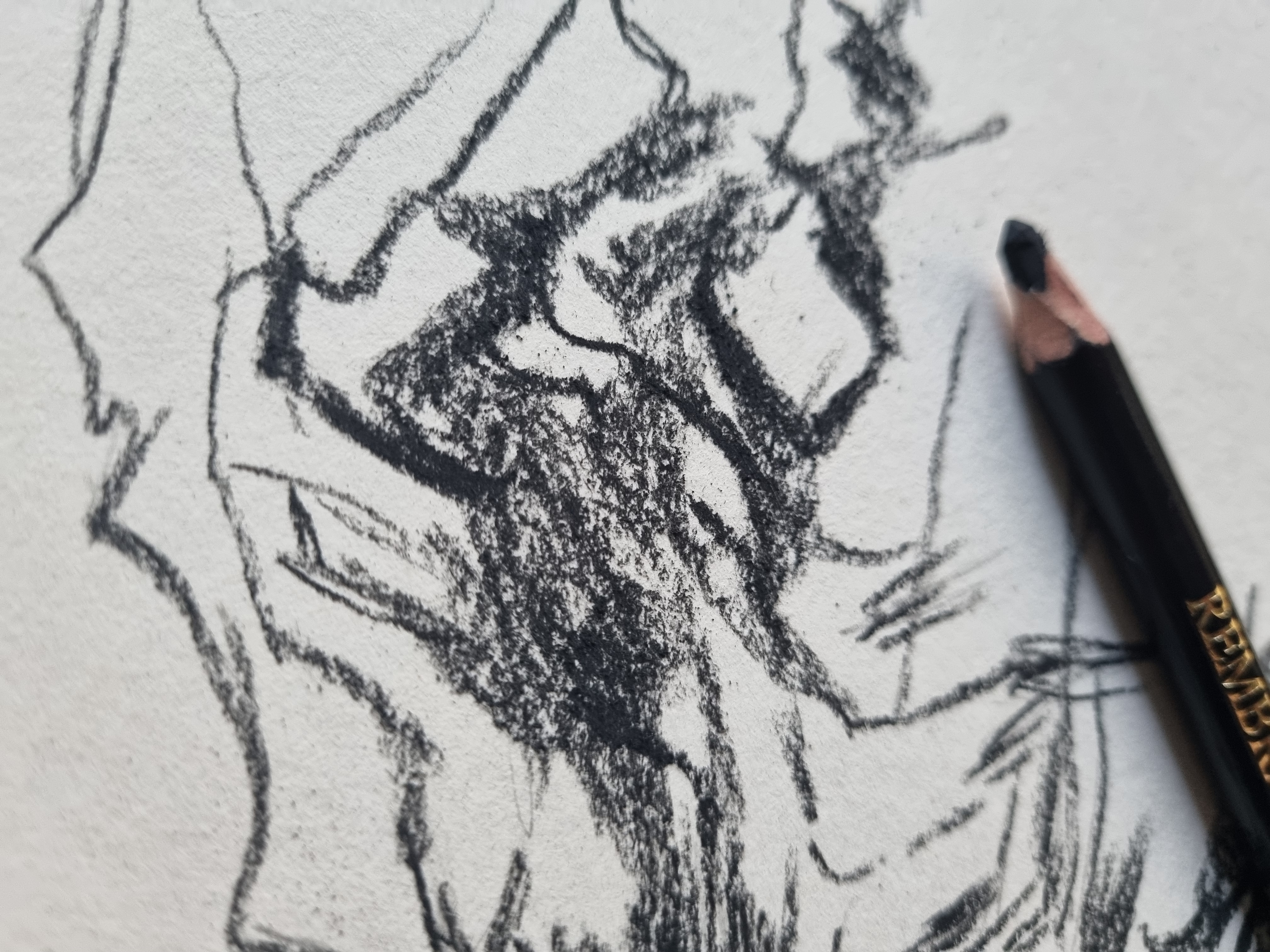 Уголь в карандаше исключительный инструмент для монохромных техник, у него широчайший тональный диапазон чёрного.