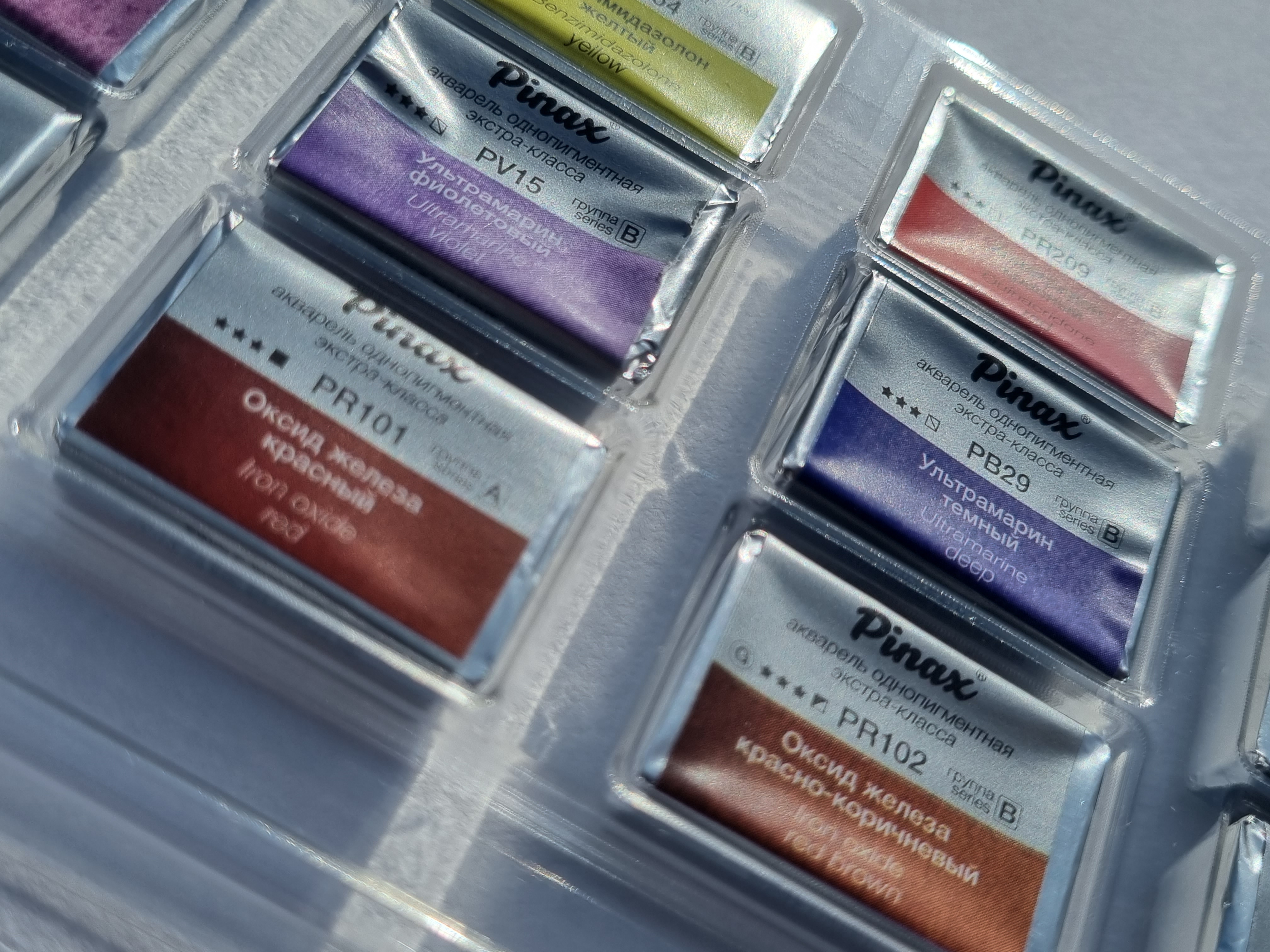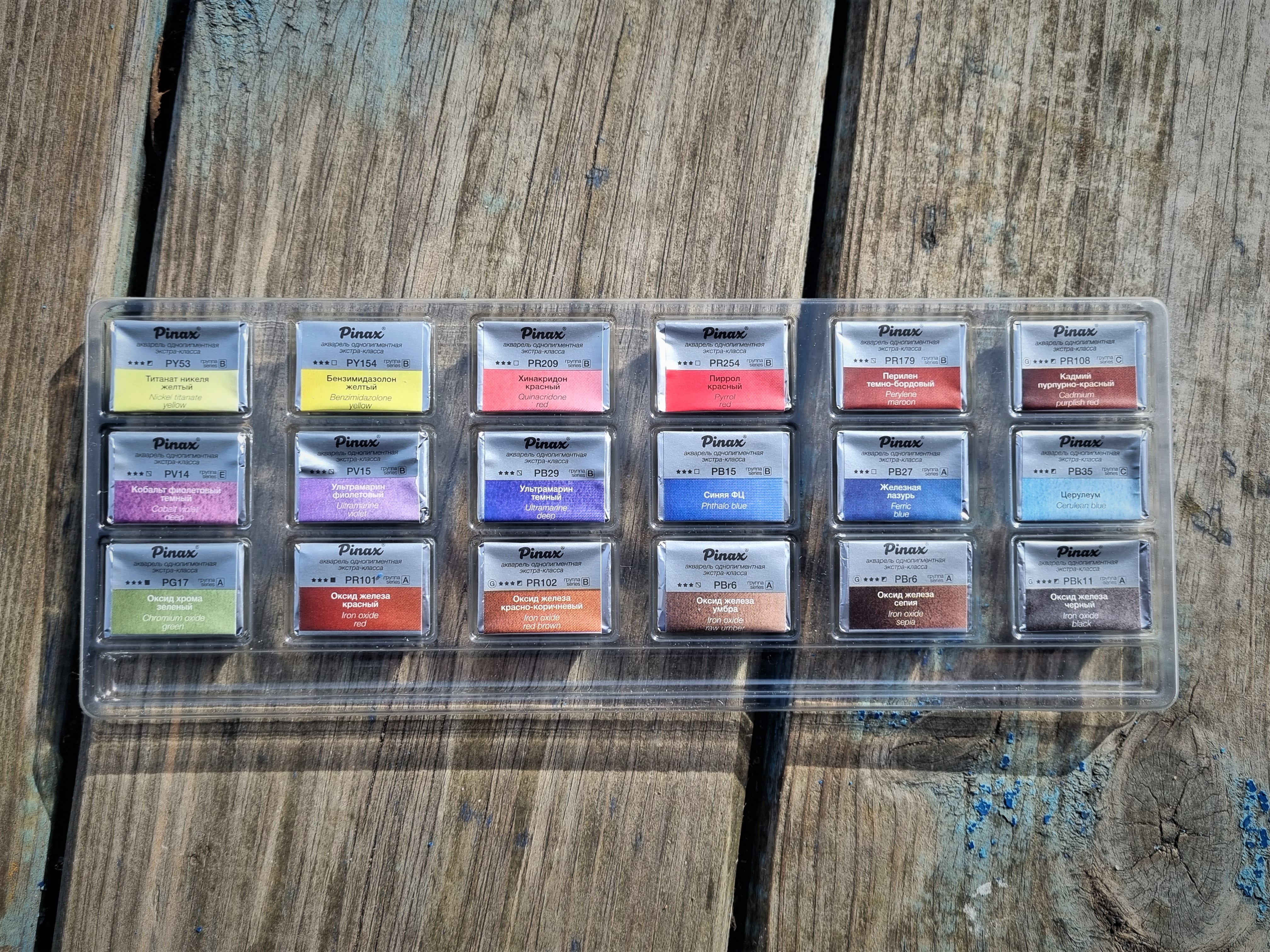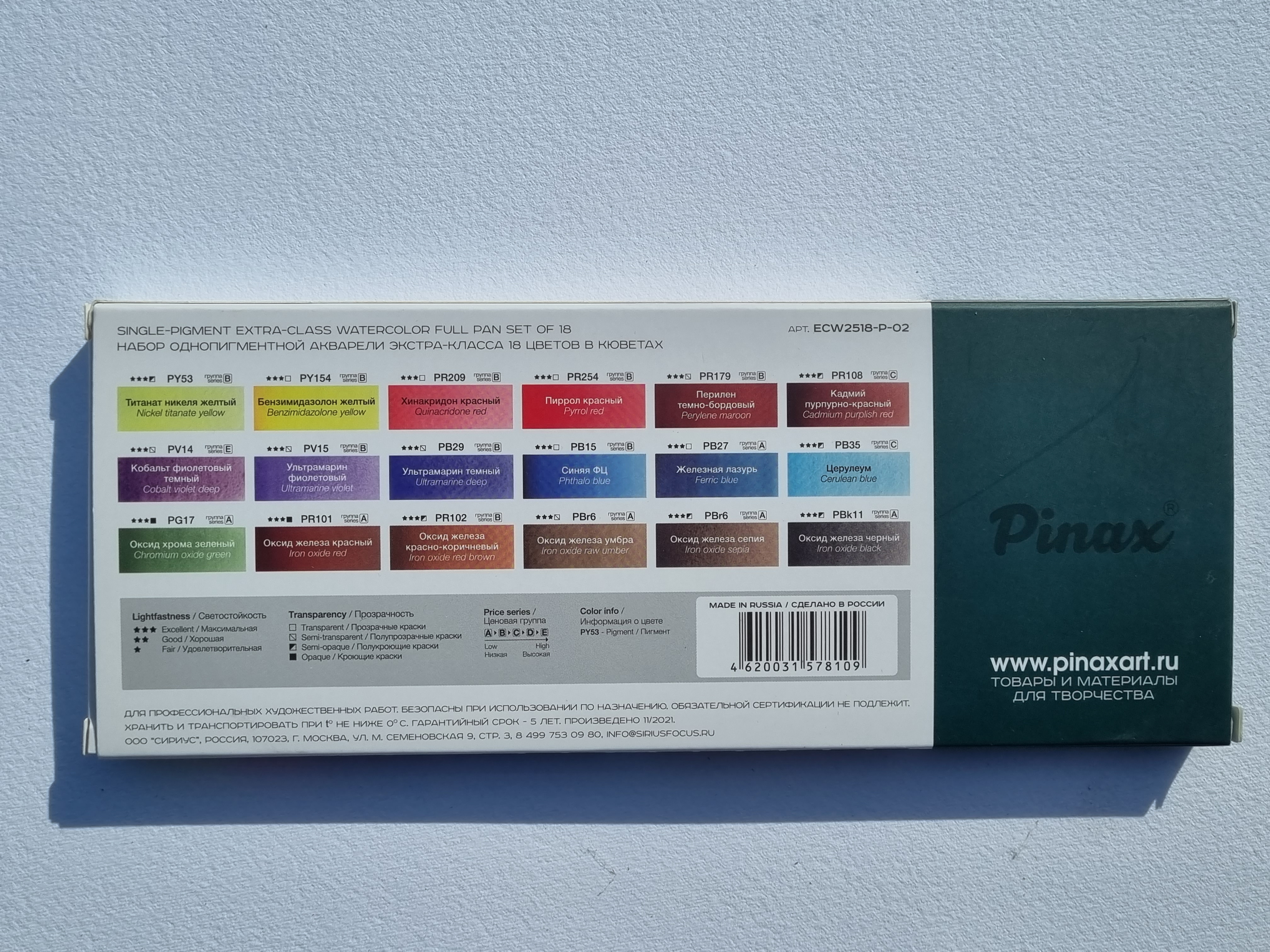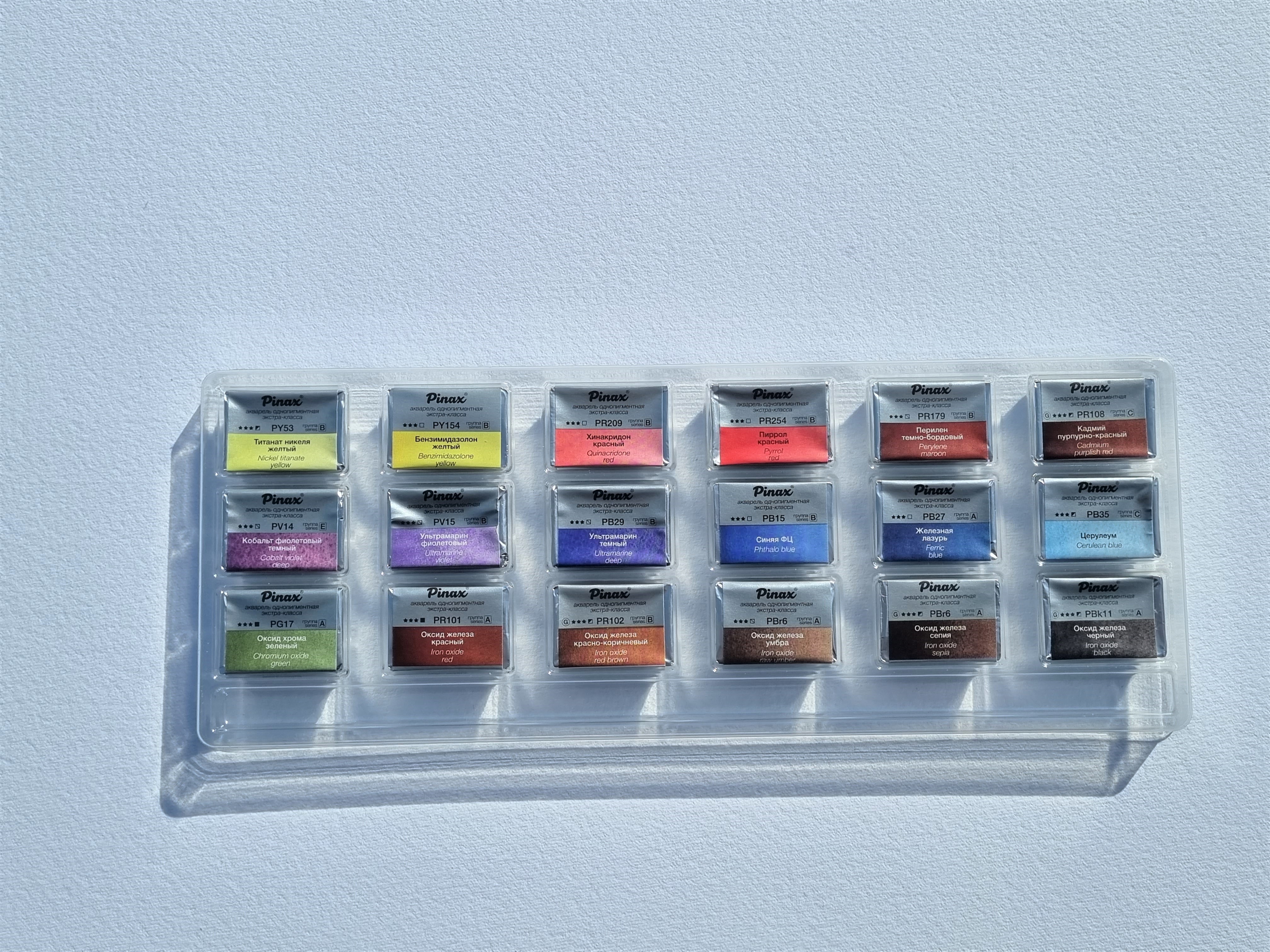 Набор №2 состоит из новых цветов Extra. Новая серия акварельных красок от Pinax «Extra» производится с использованием только одного пигмента. Краски «Extra» производятся в России.