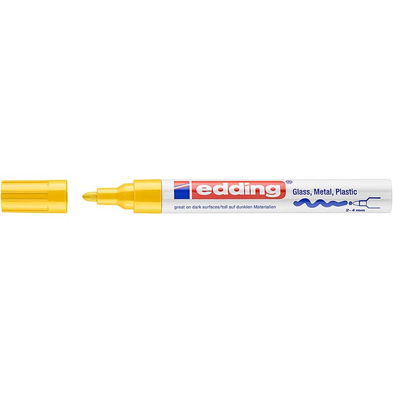 Корпус маркера Edding изготовлен из прочного алюминия. Маркер Edding-750 имеет прочный круглый (пулевидный) наконечник. Универсальный лаковый маркер Edding для нанесения надписей в промышленных индустриальных условиях. Ширина линии: 2-4 мм. Применяется для письма на жирных, пыльных, грязных поверхностях. Устойчив к кислотам, растворителям, механическому истиранию. Чернила Edding содержат высокую концентрацию пигмента, что позволяет им хорошо ложиться на гладкие и шероховатые поверхности. Специальные добавки, введенные в состав маркера Edding 750 растворяют масляную пленку на поверхности письма. Непрозрачные лаковые чернила позволяют делать хорошо заметные надписи густым плотным слоем даже на темных поверхностях. Надписи обладают термостойкостью до + 400ºС . Надписи цветами 05-010, 049, 054 видимы до + 1000ºС. Промышленный лаковый маркер Е-750 также может использоваться как универсальный, например, при нанесении меток на разнородные материалы. При маркировке изделий из резины, пластика, стекла, металла, кабеля, проводов, при нанесении маркировки на товары, нет необходимости использовать разные маркеры, можно обойтись одним – Edding 750. Кроме того, маркер Edding -750 широко используется для декоративных работ дизайнерами и оформителями интерьеров. Благодаря разнообразной палитре цветов и свойствам красящего вещества используется в витражных работах, росписи по дереву и керамике, а также для других интерьерных работ.