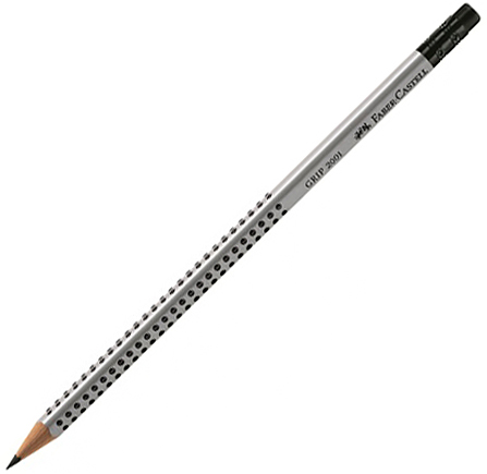 Карандаш чернографитовый "GRIP 2001 " с ластиком , трехгранный, корпус деревянный, с антискользящим покрытием, цвет корпуса - серый, твердость - В