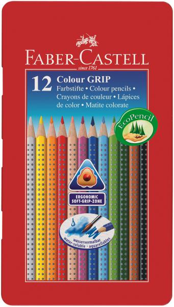 Набор цветных карандашей Grip от производителя Faber-Castell в студийной коробке из прочного материала, удобной для хранения. Могут использоваться как простые и акварельные карандаши.Карандаши имеют узнаваемый запатентованный дизайн Grip и покрыты противоскользящими шашечками. Благодаря специальной технологии проклеивания грифеля (SV), гриф