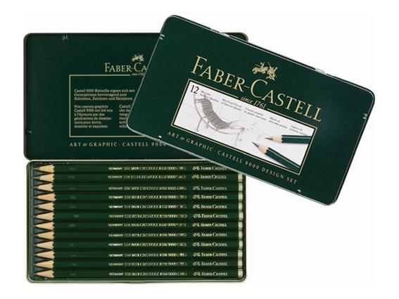 Карандаши чернографитовые "CASTELL-9000", набор дизайнерский для живописи и графики, в металлической коробке, содержит 12 карандашей разной твердости (8В,7В,6В,5В,4В,3В,2В,В,НВ,F,Н,2Н)
