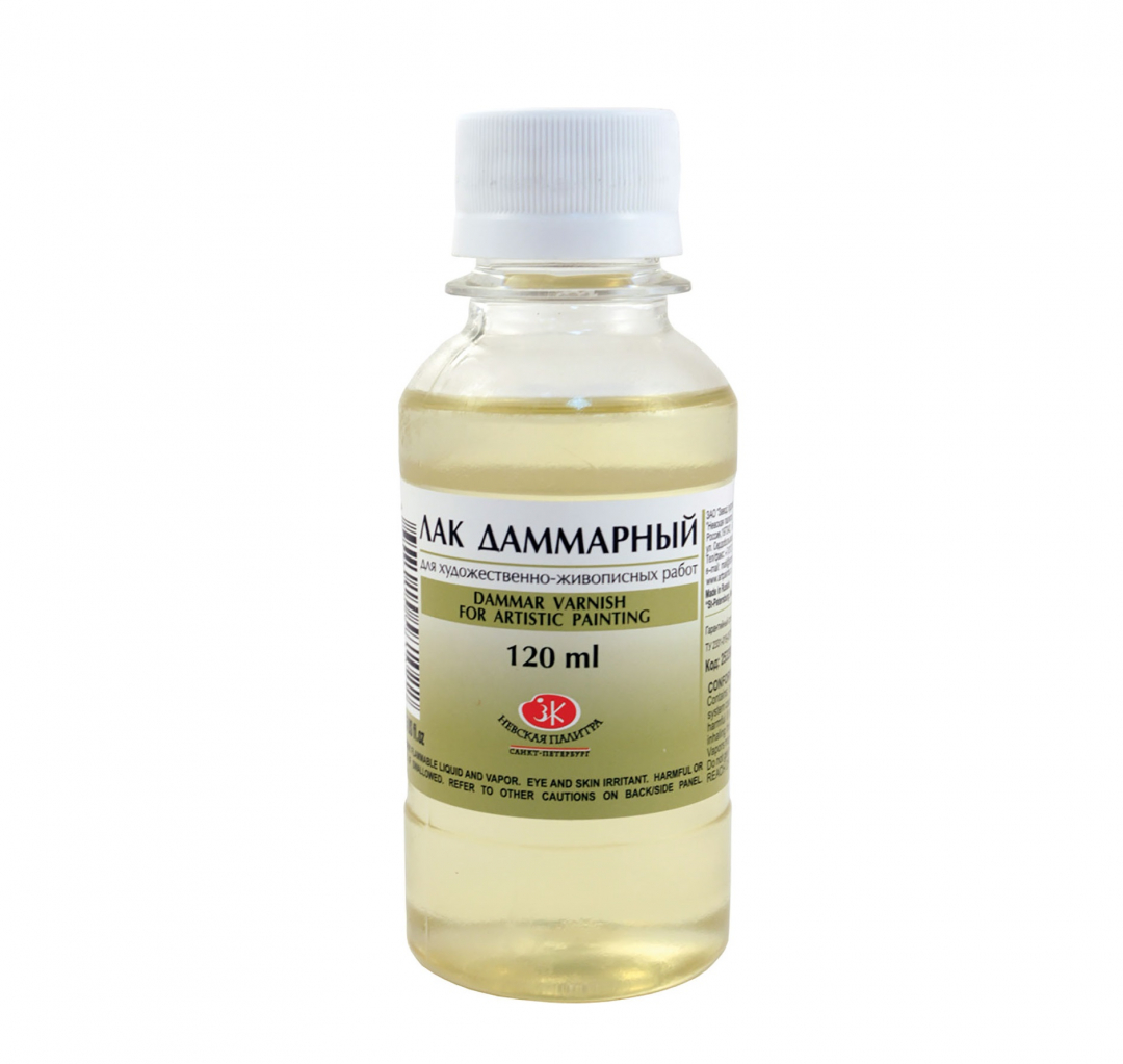 Состав: раствор смолы даммара в пинене или скипидаре.