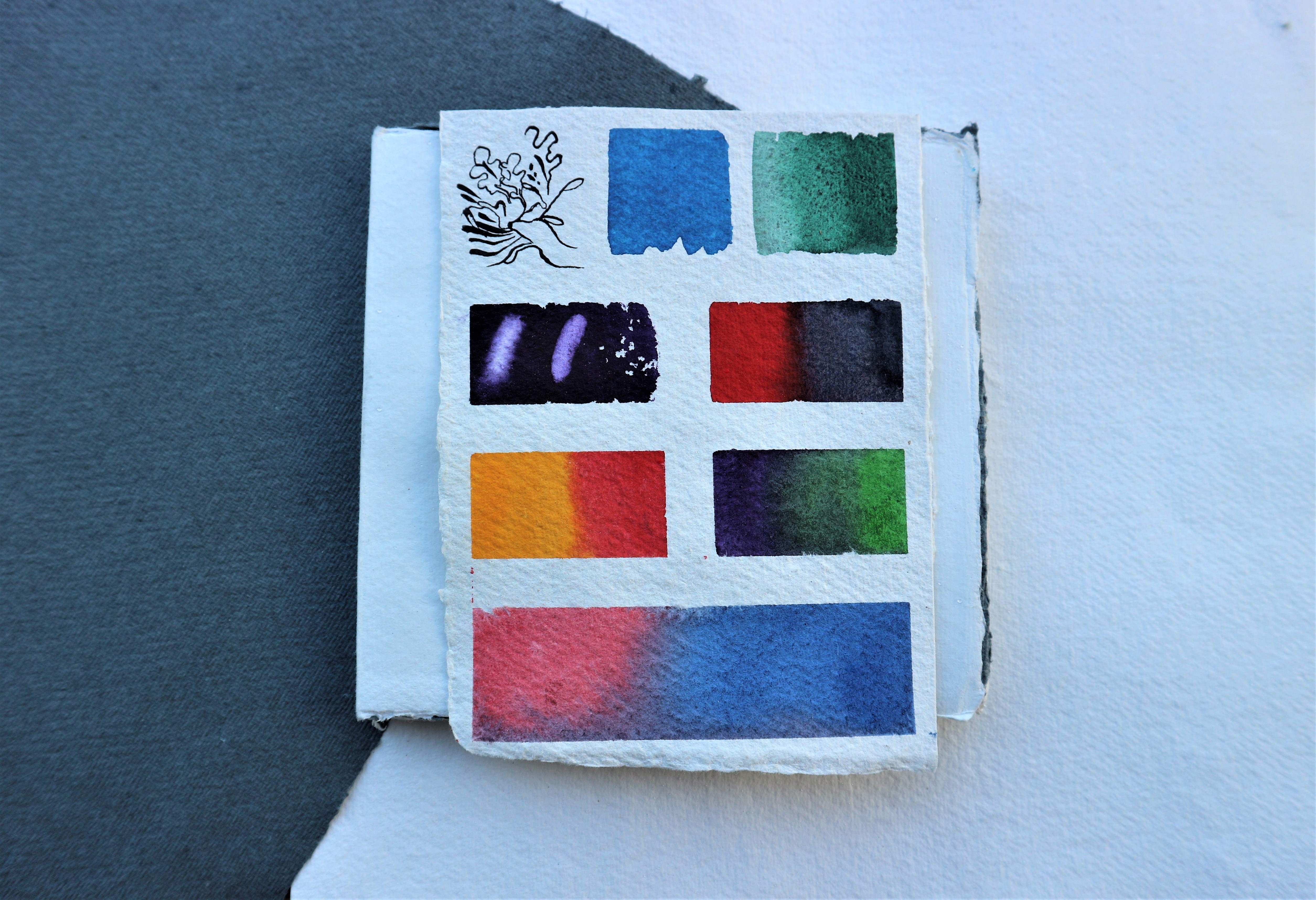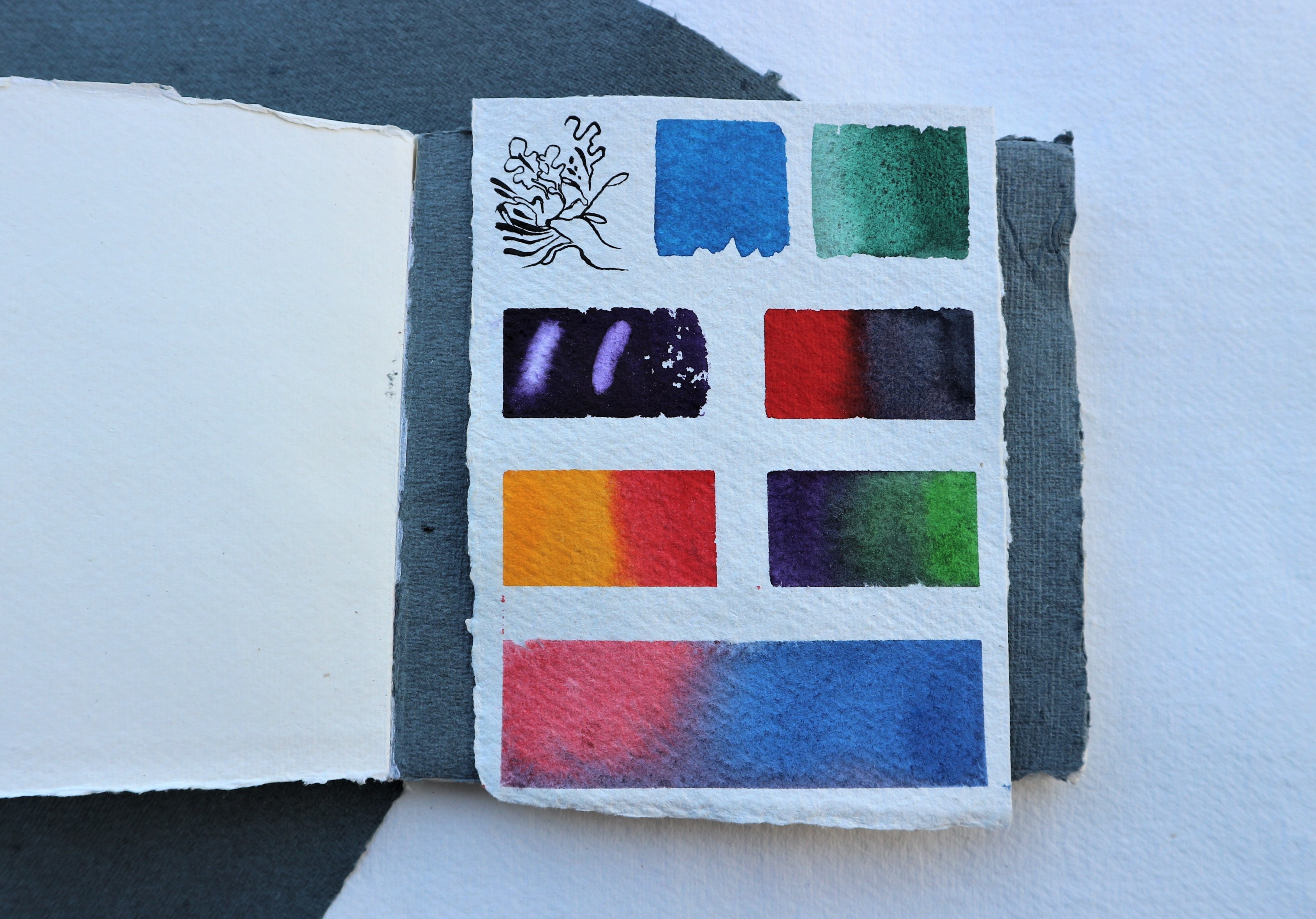 Лист принимает воду очень хорошо, абсолютно не деформируется! Кисть движется с неким сопротивлением, что неудивительно учитывая фактуру. При окрашивании видно как пигмент впивается в поры бумаги и распределяется вперёд самостоятельно, при этом делает это очень равномерно. При сталкивании с соседним пигментом, самостоятельно вливается в него, создавая градиент резкого характера с волосянистым переходом. Если же «помочь» краске кистью, то можно добиться любого желаемого градиента, в том числе плавного и длинного. То есть данная бумага позволяет сделать смешение того вида, который нужен художнику (и графичность и натуралистичность.).