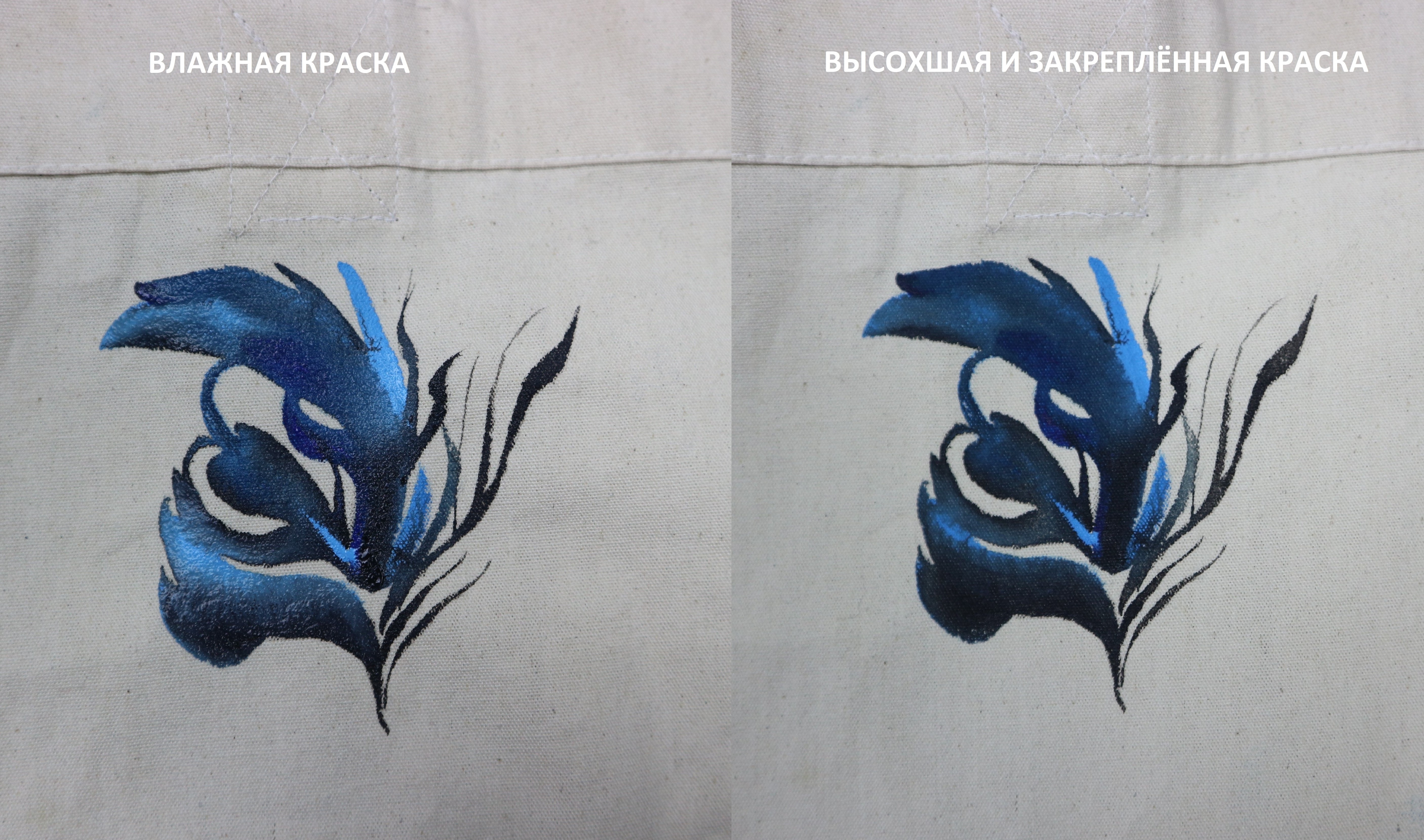 Краска проникает в ткань, а фиксация утюгом - дополнительно впаивает краситель.