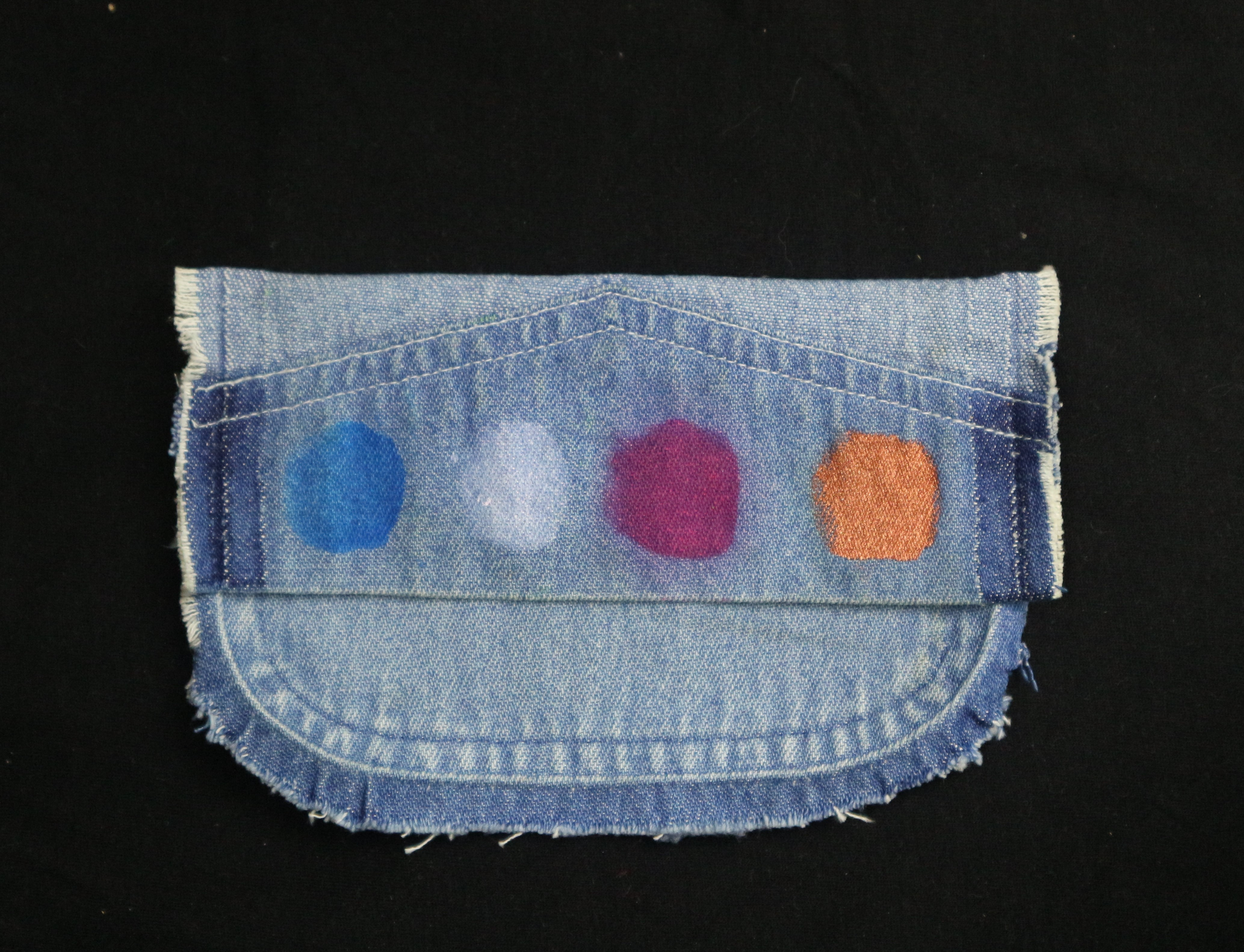 - Зафиксировать краску утюгом, прогладив с изнаночной стороны, через ткань и без использования пара. Роспись следует проглаживать через ткань (а не через бумагу, чтобы краска не прилипала).Обычно рекомендуют использовать температуру, соответствующую виду ткани, но надёжнее придерживаться усреднённой температуры, даже в случае с плотным денимом;