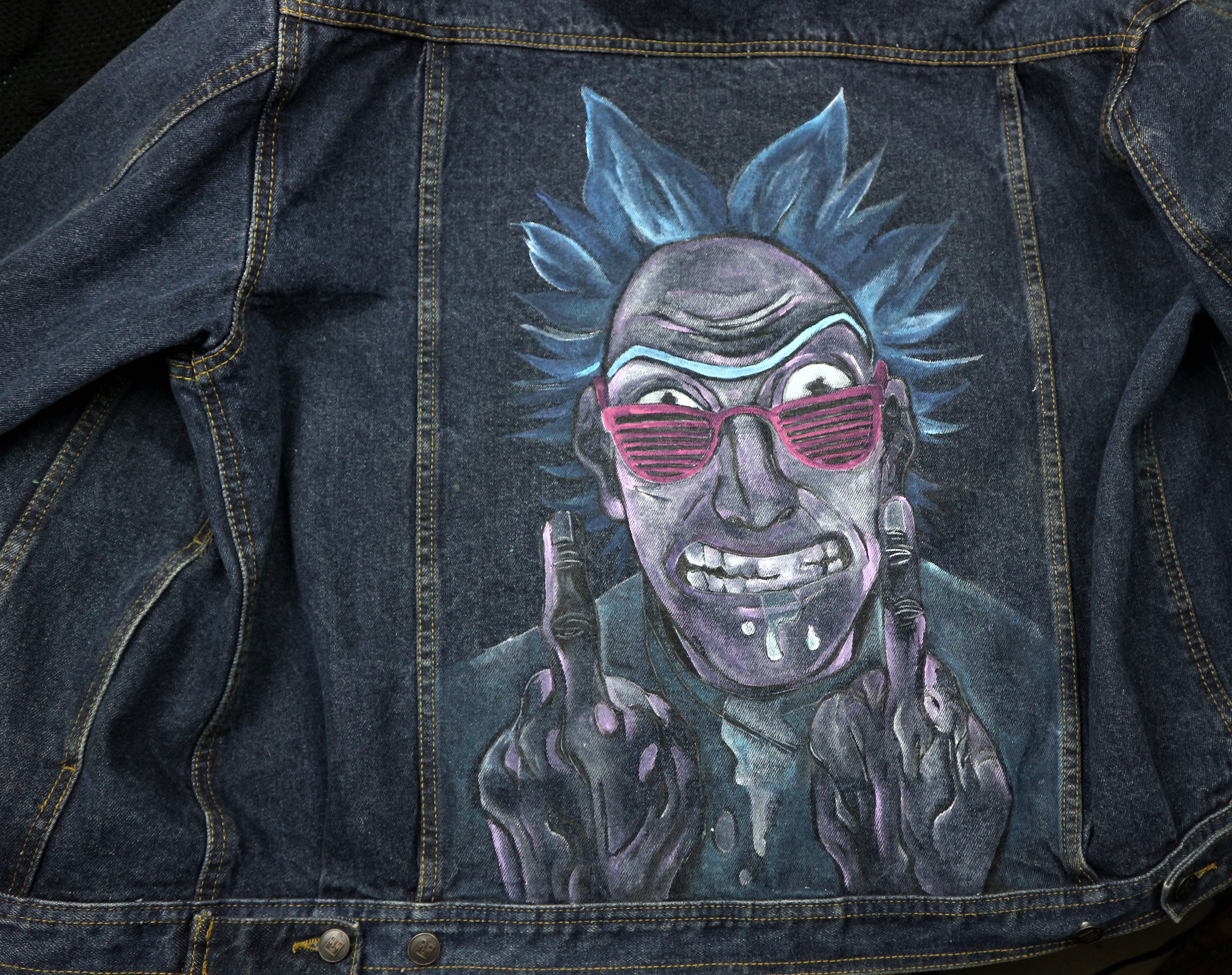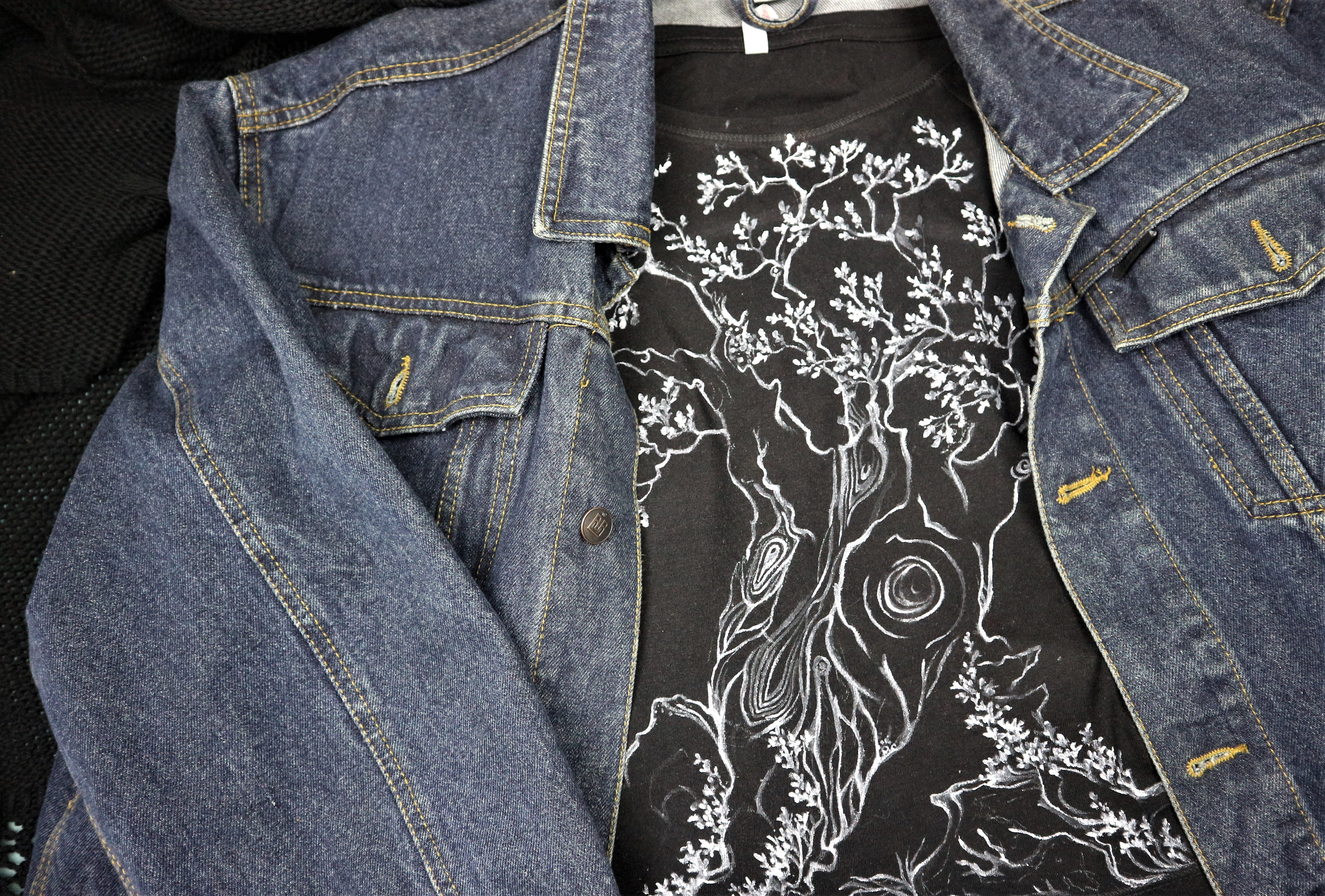 Никакой дополнительной фиксации, например лаком, не требуется, более того, она может привести к нежелательному огрублению работы и последующей ломкости краски при эксплуатации одежды.