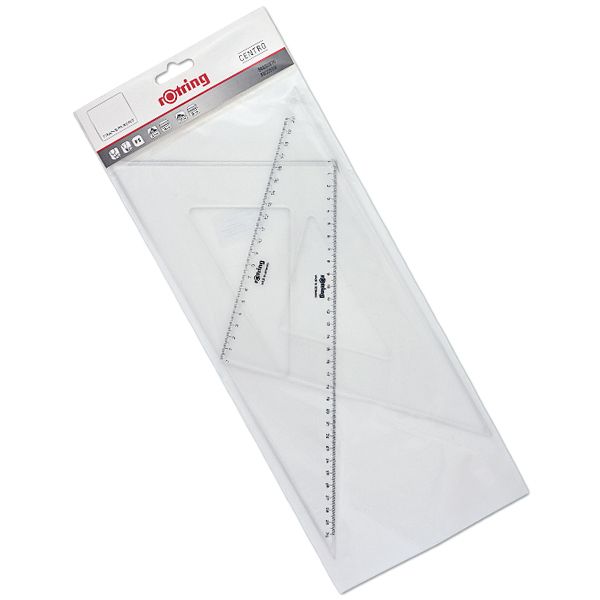 Набор угольников CENTRO из 2 угольников 45 и 30 /60 . Абсолютно прозрачные, из прочного пластика, нескошенные края. Шкала 1 мм. 45 , гипотенуза 32 см 30 /60 , гипотенуза 37 см