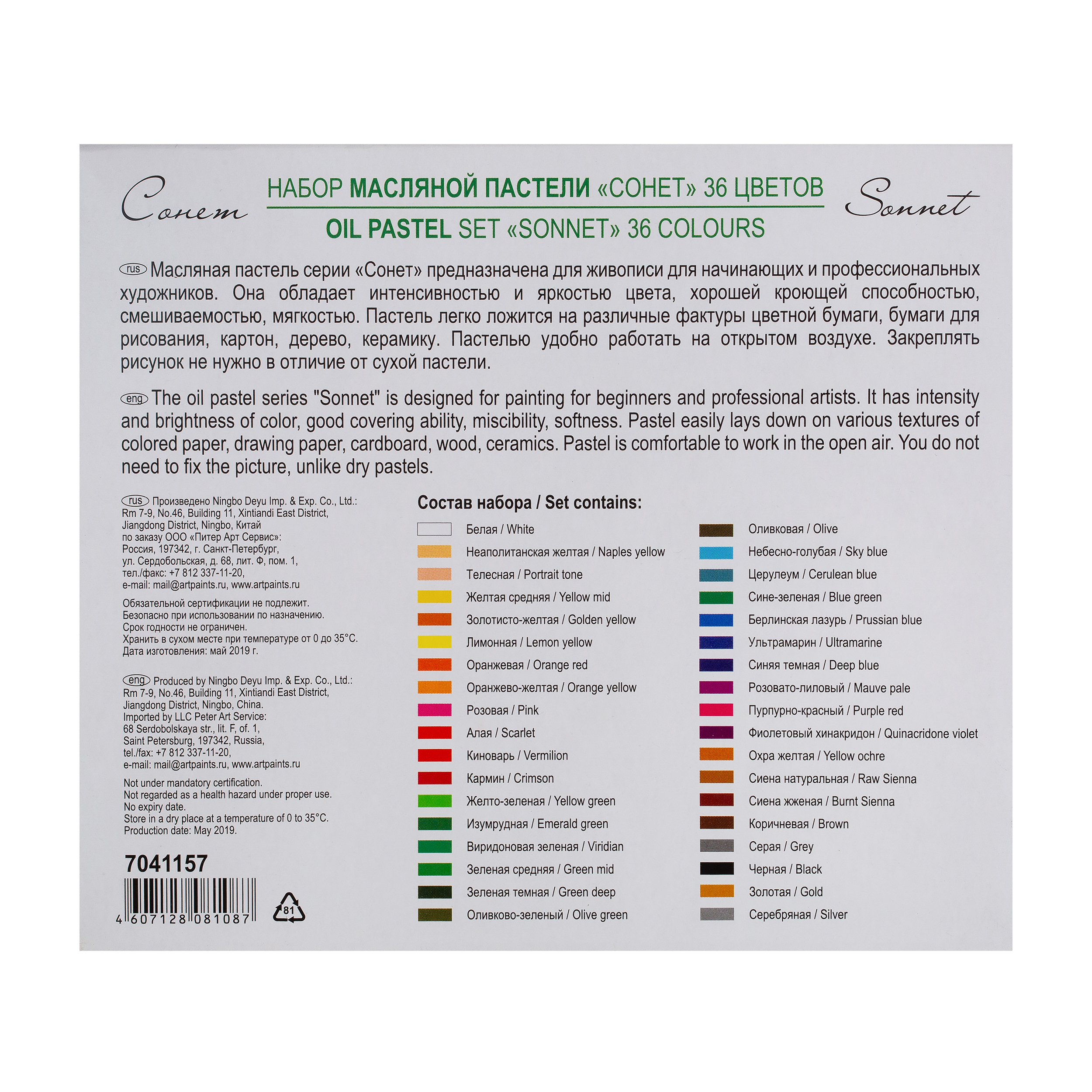 Пастель масляная "Сонет", 36 цветов