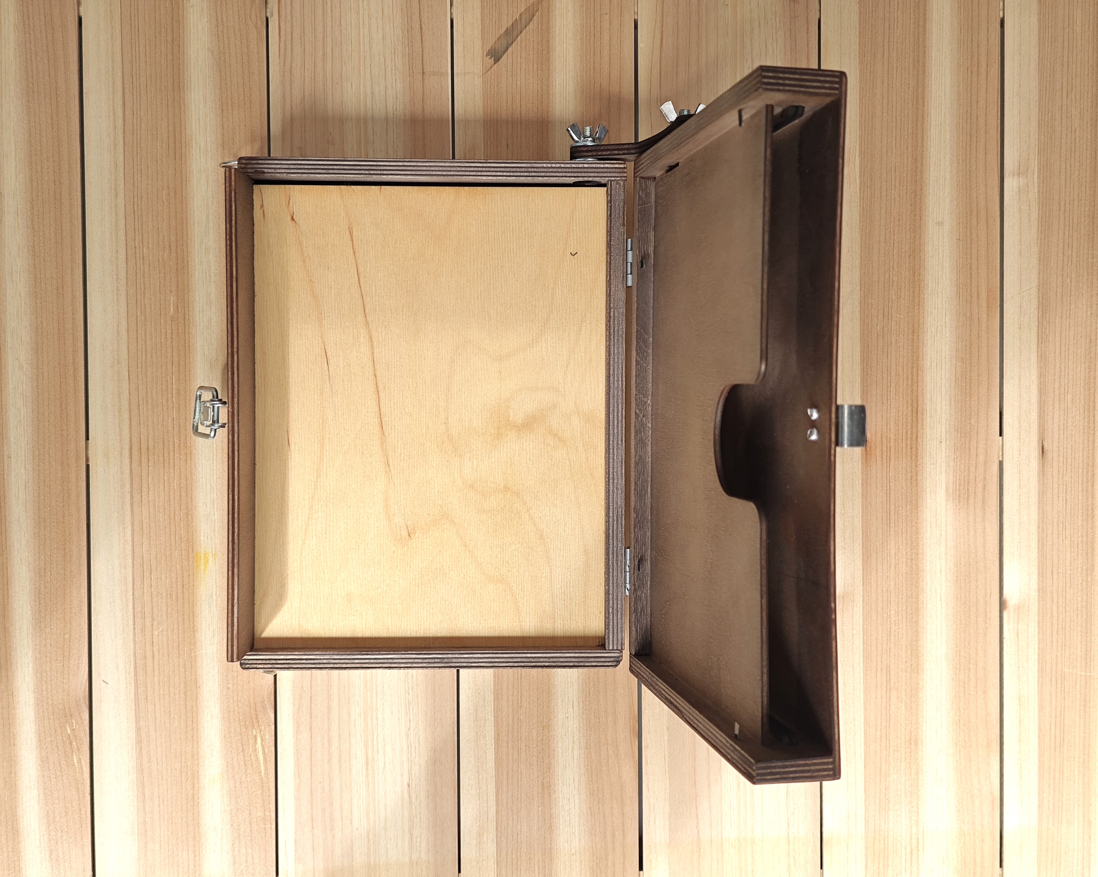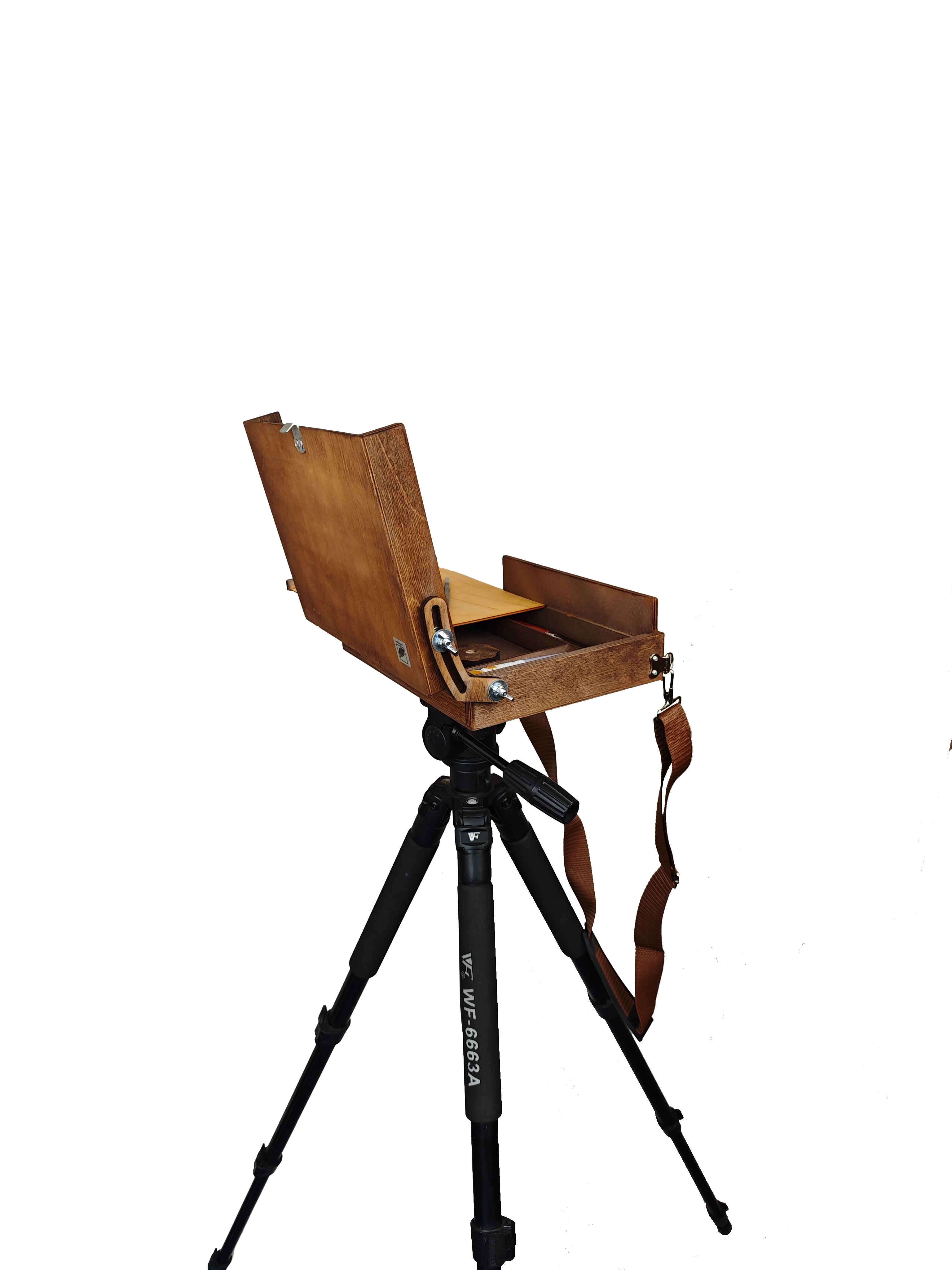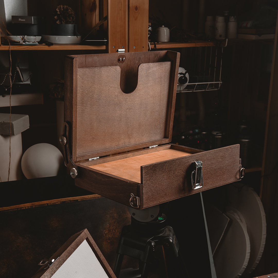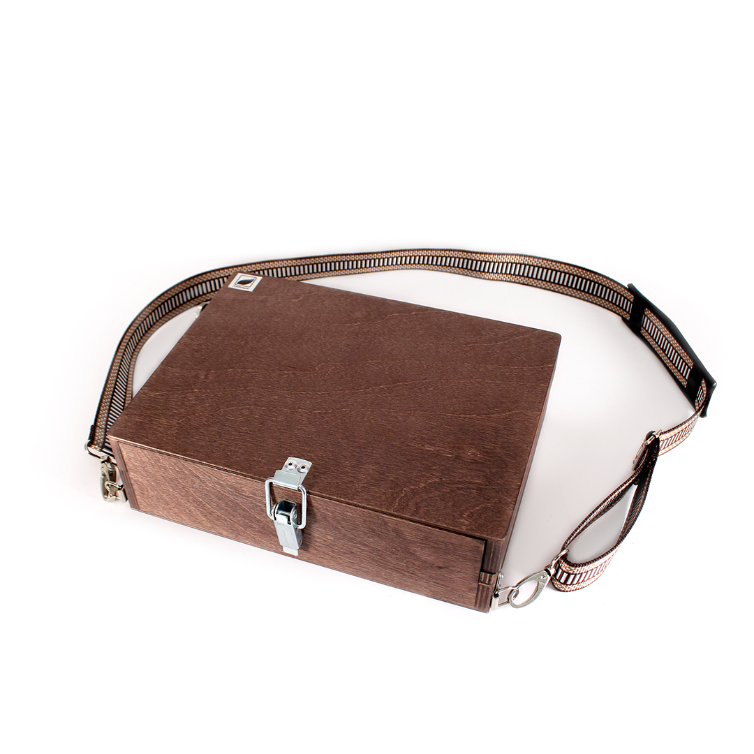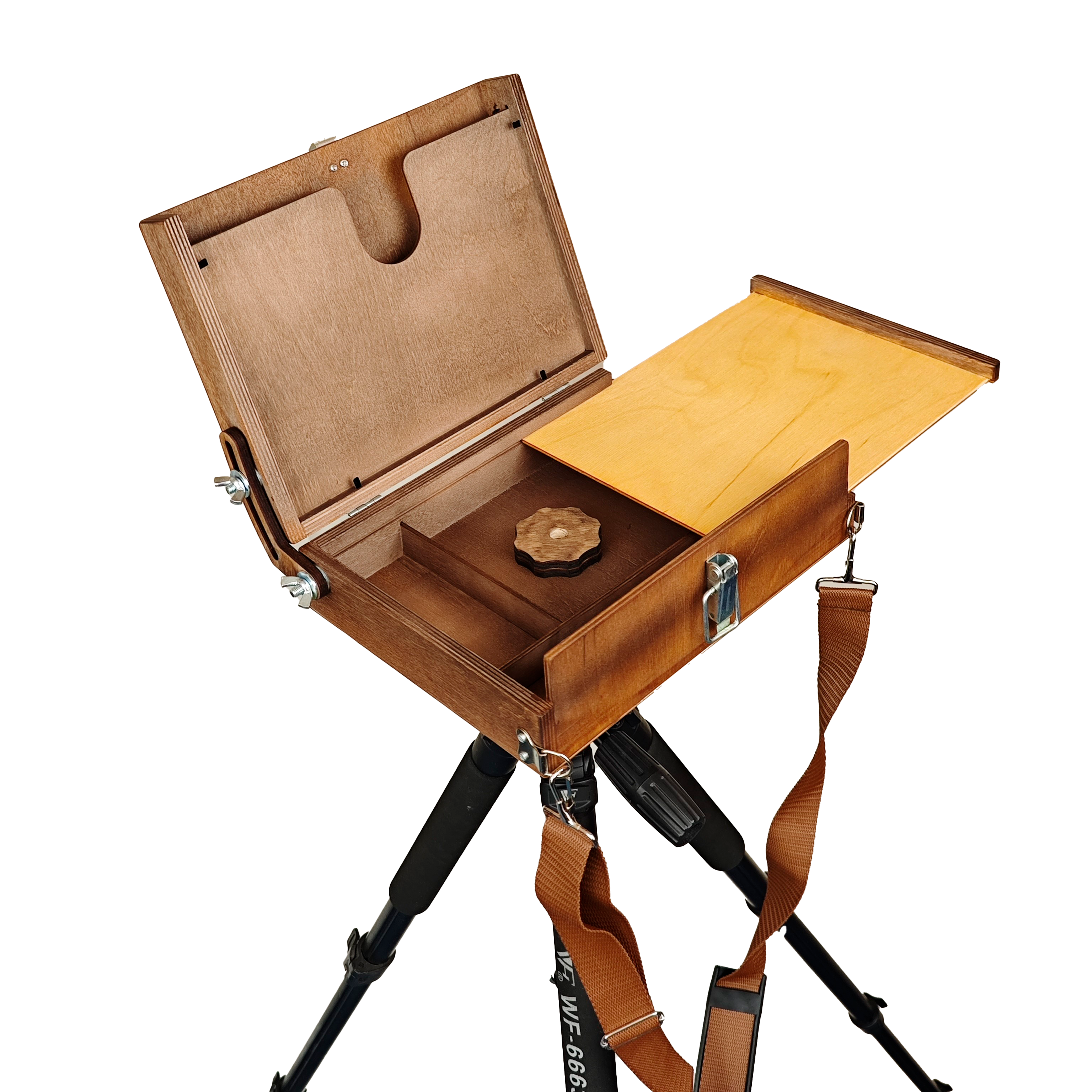 Оснащён плечевым ремнём, в комплекте с этюдником идет холст на ДВП.