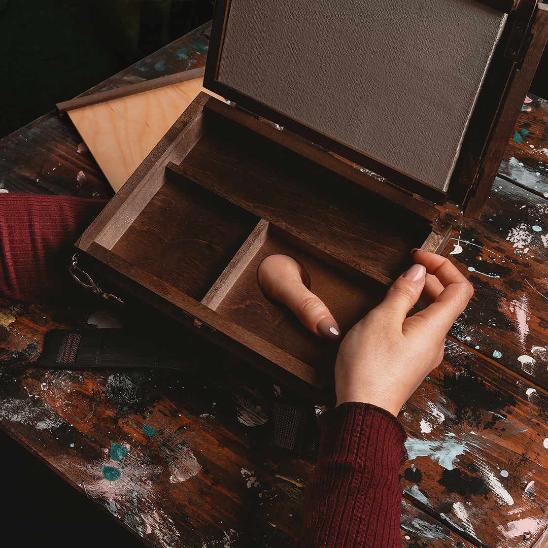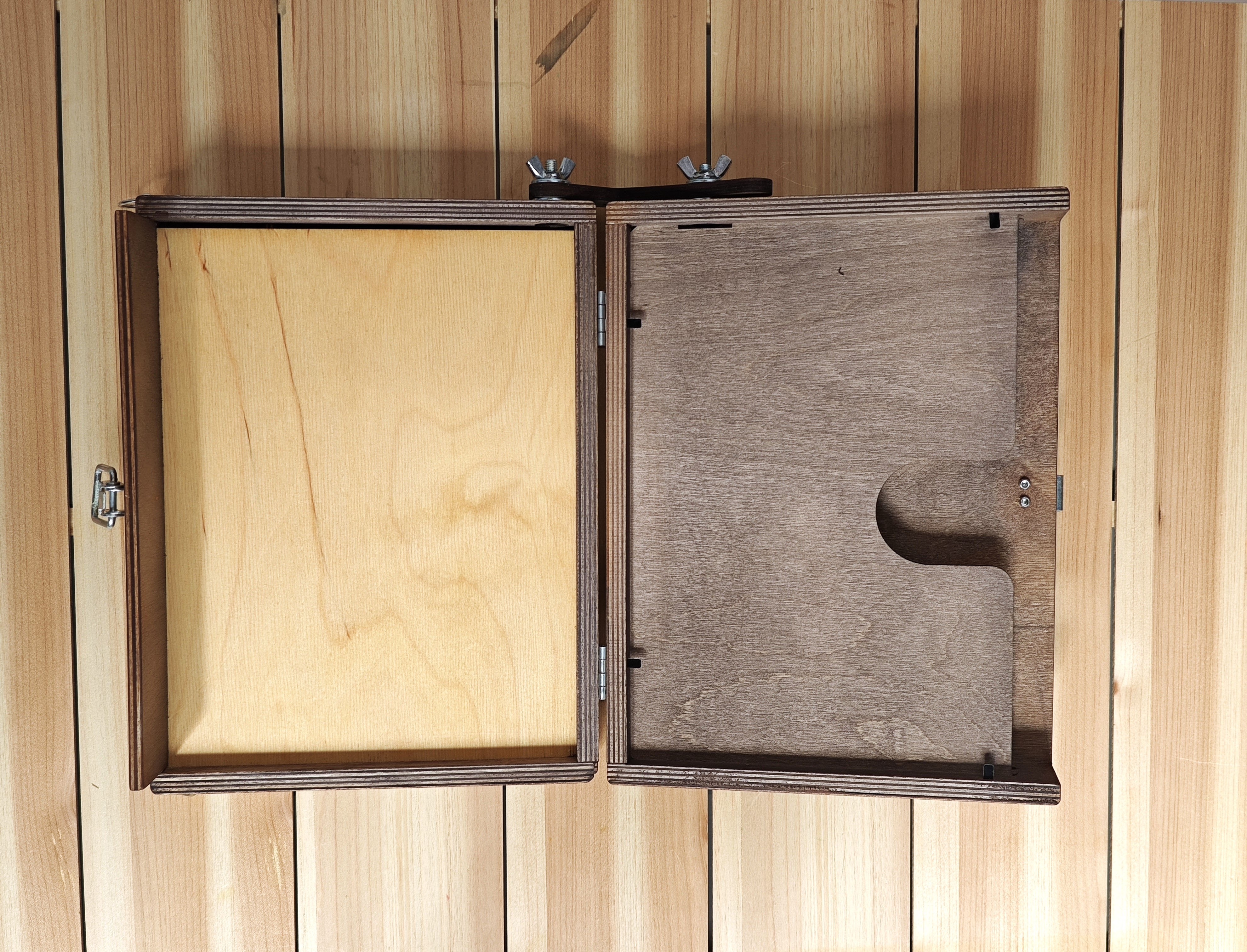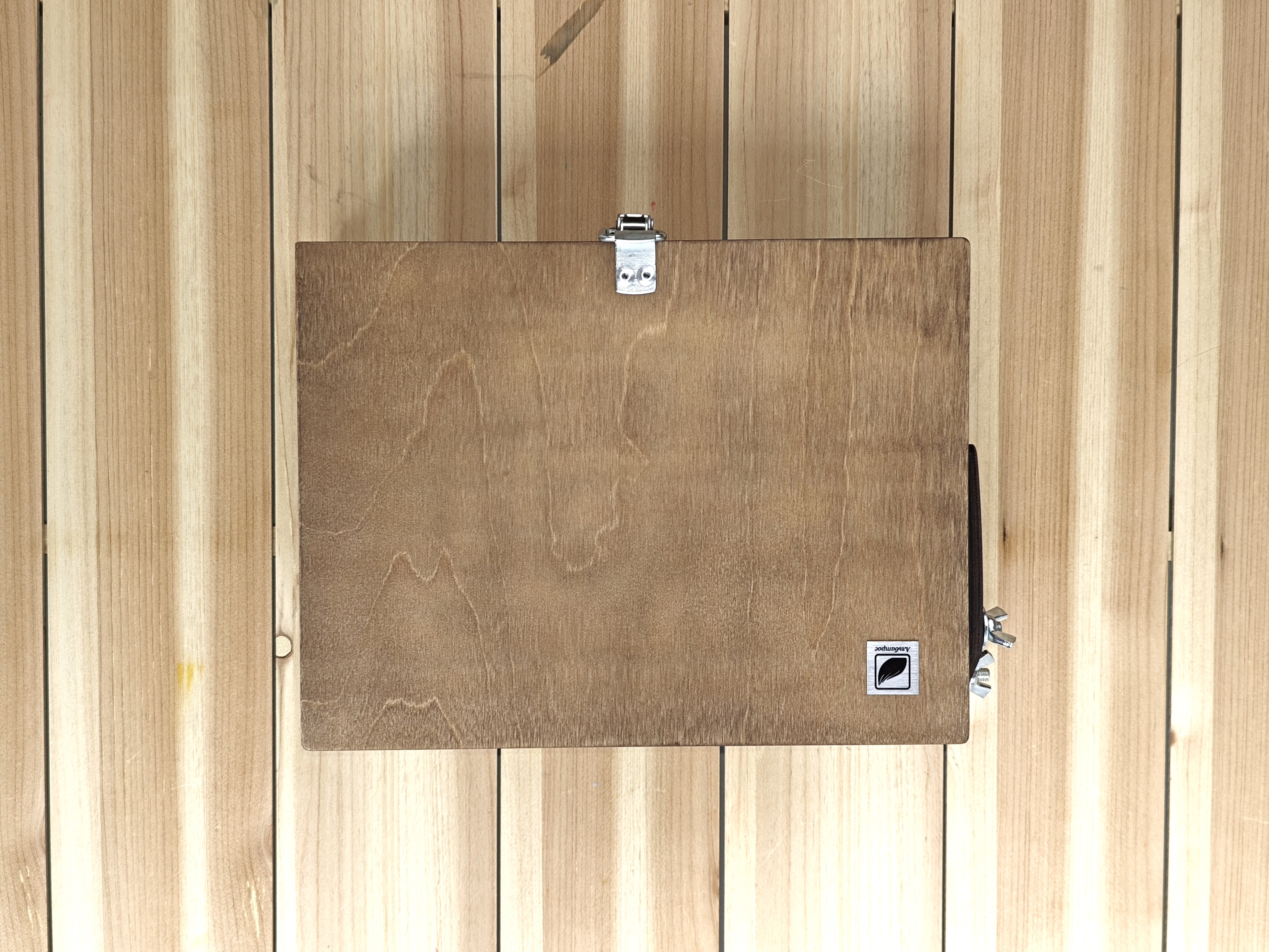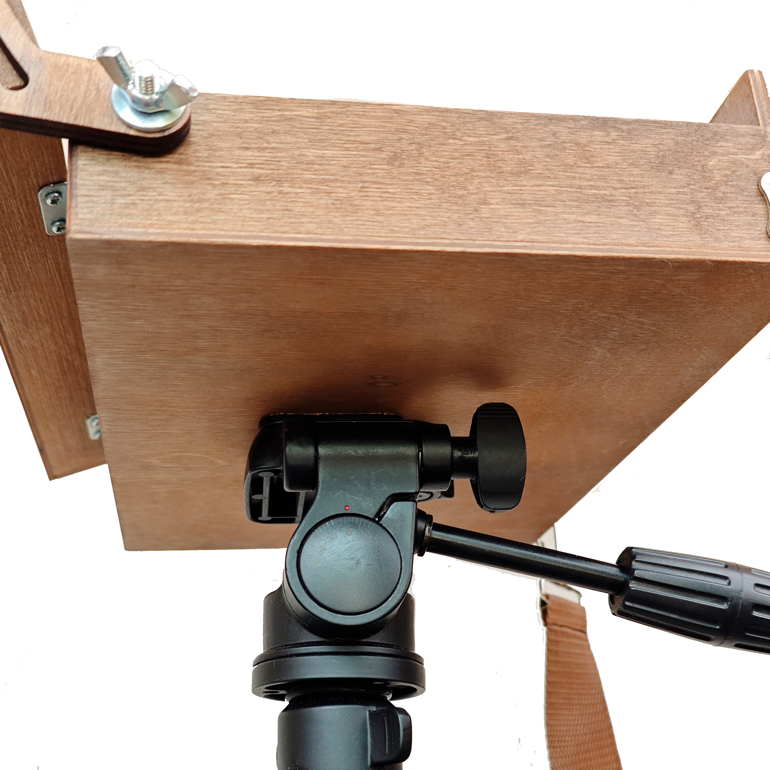 Оснащён плечевым ремнём, в комплекте с этюдником идет холст на ДВП.